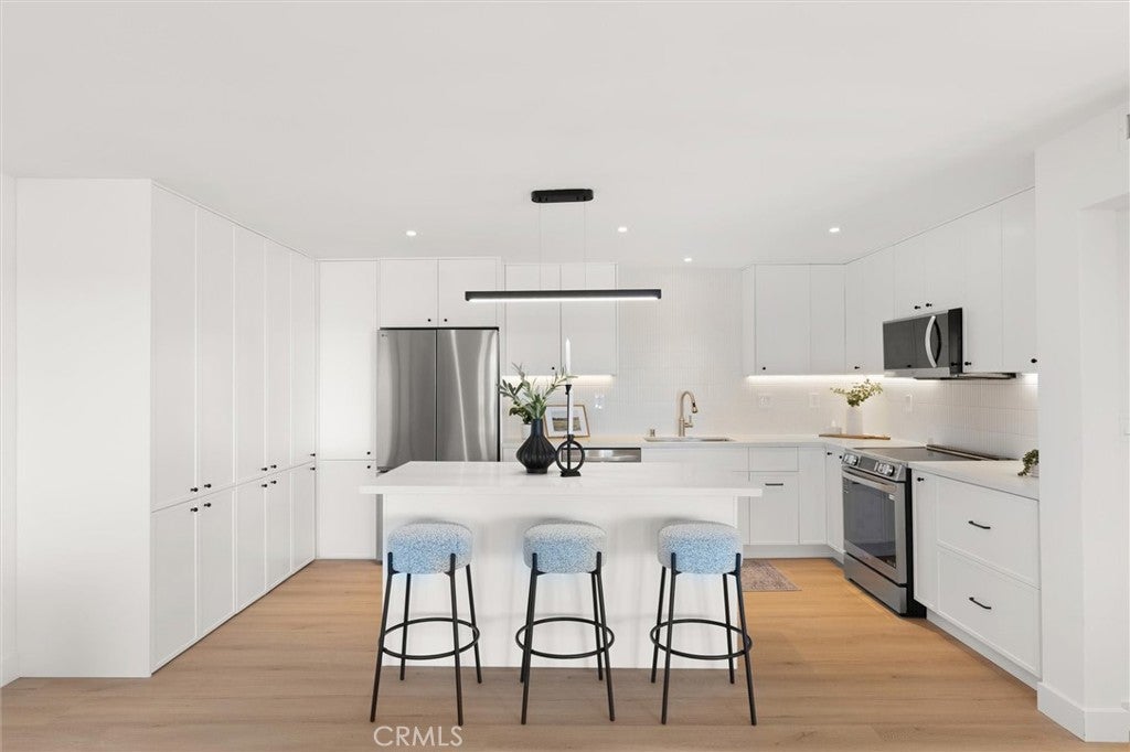 Motivated seller! The seller may offer credit toward the buyer’s closing costs or a rate buydown. Come and see this one-of-a-kind, beach-facing condo, with an expansive 550 sqft of exclusive outdoor private patio. This meticulously renovated 2-bedroom, 2-bathroom condo offers 1,034 square feet of smart living space, artfully designed with contemporary elegance and functionality with only one shared wall. Step inside and be greeted by the pristine ambiance of 100% new interiors. Every detail has been considered, from the new plumbing and water lines to the sleek flooring and trim. The bathrooms and all fixtures have been completely reimagined, showcasing the finest Kohler bathroom sink fixtures, toilets, and a luxurious master vanity. The heart of this home is the stunning kitchen, featuring all-new stainless steel appliances, including a 30” induction range, microwave hood vent, dishwasher, and refrigerator. The undercabinet LED lighting highlights the exquisite quartz countertops and custom cabinetry, creating a perfect blend of style and utility. Enjoy the comfort of a new heating and AC system, controlled via a smart Nest thermostat, ensuring your home is always at the perfect temperature. The living spaces are illuminated by all-new LED recessed lights, enhancing the modern aesthetic throughout. The exclusive-use side gate provides convenient access for your guests, making entertaining a breeze. This midrise residence offers a wealth of amenities, including a common area garden, barbecue area, elevator, secure garage with assigned parking, laundry facilities, bike room, security gate, and a comprehensive security system, all ensuring a lifestyle of convenience and peace of mind. Experience the elegance of coastal living with the sophistication of a smart, modern home at 1200 East Ocean Boulevard. Don’t miss this opportunity to make this exquisite condo your own!