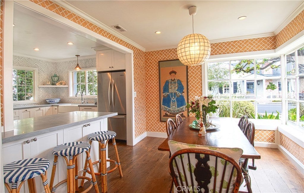 Charming Bayshores is showcased perfectly with this finely appointed furnished home. Remodeled and turnkey, the beautiful residence includes everything from a full inventory kitchen to sophisticated artwork throughout each room. The gated community offers two bayfront beaches, organized events, a marina, playground and private access directly into the Balboa Bay Club and Resort. For any occasion this is a wonderful opportunity to experience the renown neighborhood in a gorgeous home.