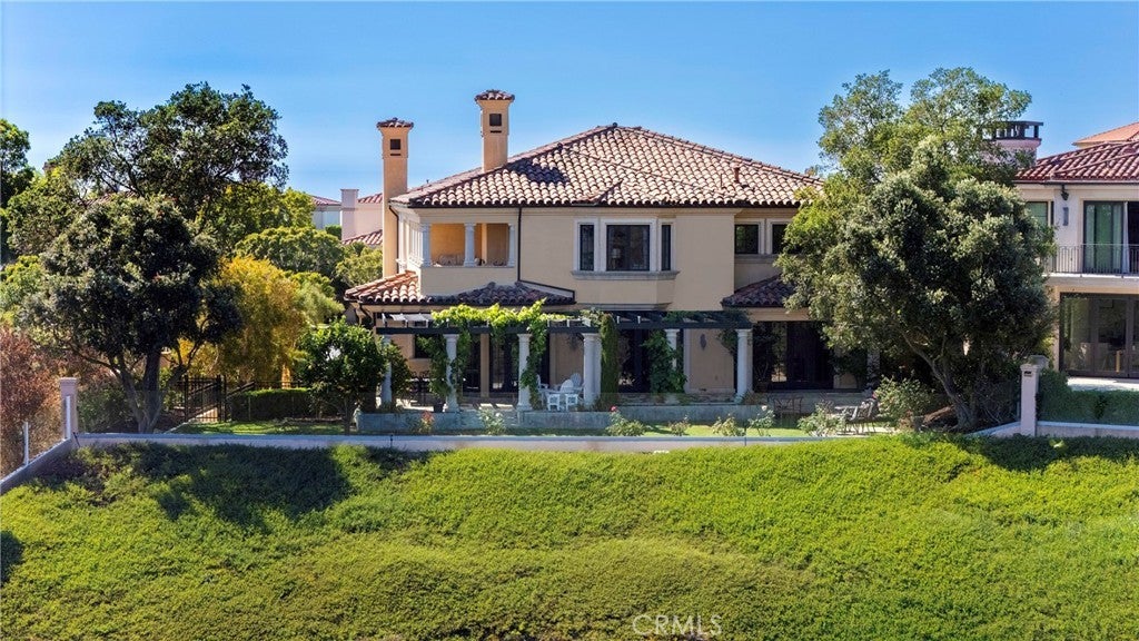 Set within the prestigious 24/7 guard-gated community of Pelican Ridge in Newport Coast, this custom-built estate embodies timeless architecture and refined luxury. Designed in a traditional Palladian style, the residence showcases an exterior of elegant symmetry, manicured landscaping, and stately hardscapes that immediately convey a sense of grandeur. A private front courtyard with a majestic central fountain sets the tone for the sophistication that lies beyond. Inside, the home reveals interiors that are both classically timeless and exceptionally livable. A soaring foyer introduces the residence with dramatic ceiling heights and an abundance of natural light, flowing seamlessly into the formal living and dining rooms. To the rear, the informal living room, breakfast nook, and gourmet kitchen complete with a butler’s pantry creates a welcoming atmosphere for everyday living and effortless entertaining. An office and optional bedroom suite provide additional versatility on the main level. The estate offers five bedroom suites and five and a half bathrooms, each designed with enduring elegance and comfort. The master retreat is a sprawling sanctuary featuring a generous bedroom, private covered balcony, dual custom closets, and a spa-inspired bath that evokes the feeling of a five-star resort. The subterranean level provides expansive garage accommodations and storage, ensuring both practicality and discretion. Outdoors, the rear grounds unfold as a serene coastal haven. Covered loggias for lounging and dining are complemented by lush lawns and mature specimen plantings, all set against a breathtaking backdrop of coastal canyons that cascade toward the endless blue horizon of the Pacific Ocean. Perfectly positioned, this estate offers not only the privacy of a personal resort but also proximity to world-class shopping, dining, and entertainment, pristine beaches, and John Wayne Airport all within moments. A rare offering of architectural distinction, this Pelican Ridge estate epitomizes the timeless elegance and unmatched coastal lifestyle of Newport Coast.