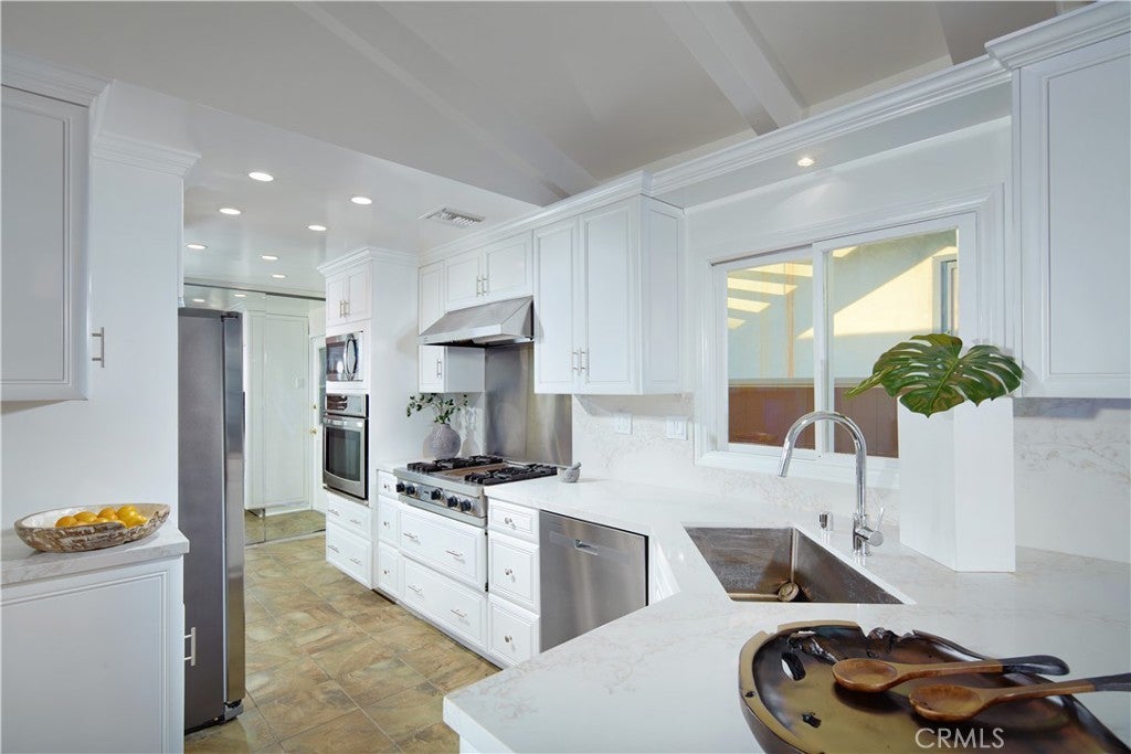Beamed Ceilings, Crown Molding, Quartz Counters, Recessed Lighting