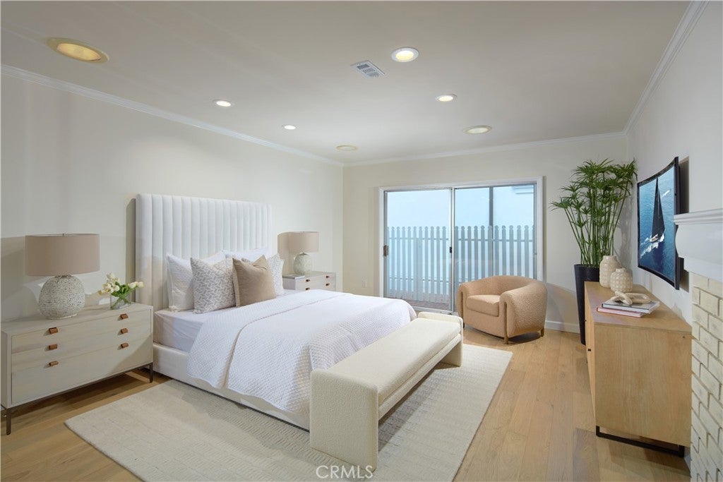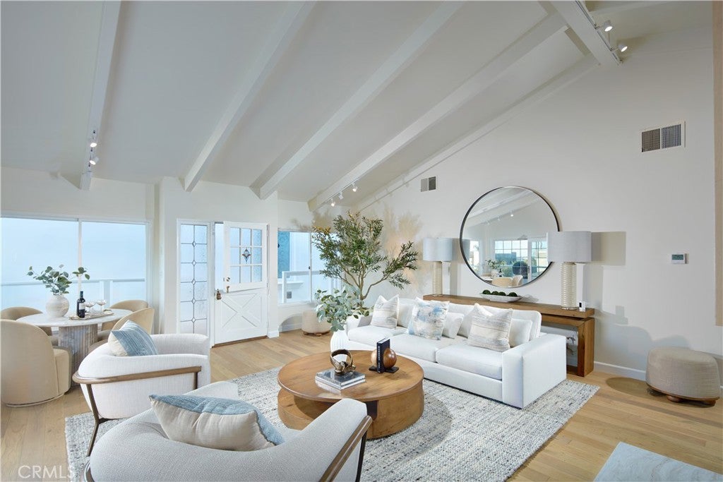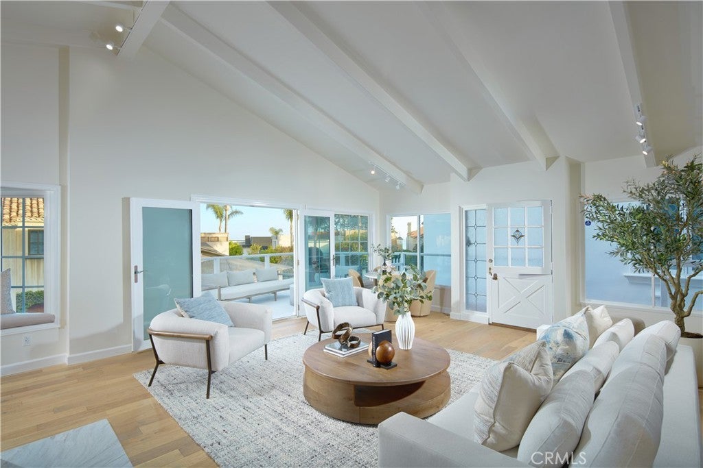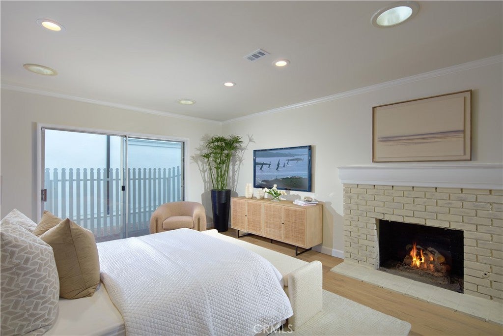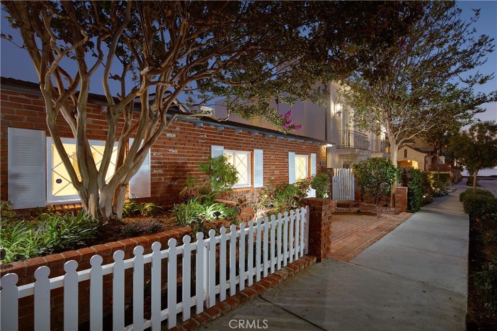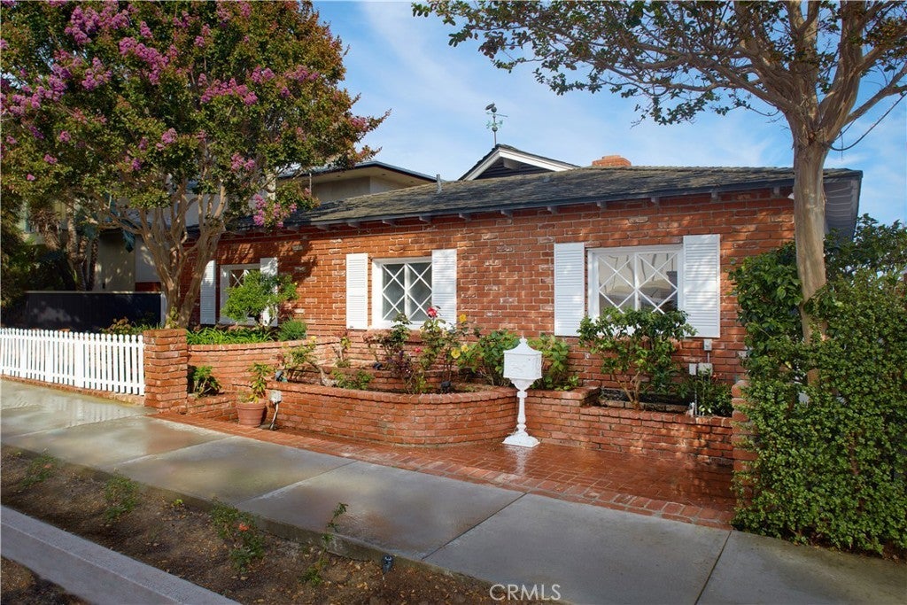 Set on a coveted 40-foot wide lot along Corona del Mar’s prized 200 block, this single-level residence embodies the charm and sophistication of village living. Offering approximately 2,468 square feet with 3 bedrooms, 2 bathrooms, and the rare convenience of a two-car garage below, it enjoys a location just moments from Little Corona beach, boutique shops, and local dining. A Dutch door entry reveals light-filled interiors where vaulted, beamed ceilings, crown molding, and a welcoming fireplace framed by custom built-ins create warmth and character. French doors open the living room to a balcony with treetop vistas and ocean breezes, while the kitchen—appointed with Calacatta Prado countertops and crisp cabinetry—flows easily into the dining area and outward to a private front patio. All three bedrooms are located on the main level, with the primary suite offering vaulted ceilings, generous storage, and a redesigned bath that blends elegance with ease. Fresh paint, new flooring, and remodeled baths further refine the home, striking a balance between timeless charm and modern updates. Wide frontage, classic details, and a sought-after setting in the heart of Corona del Mar make this residence a rare offering where coastal lifestyle and enduring style meet.