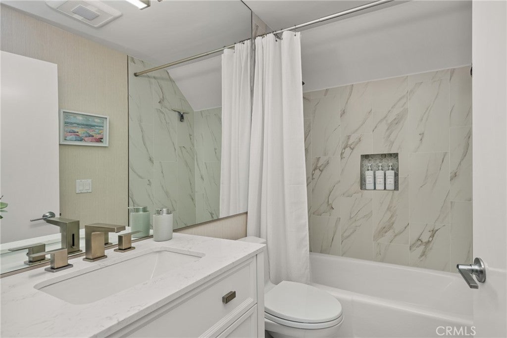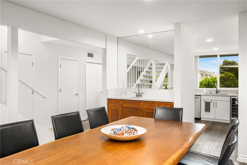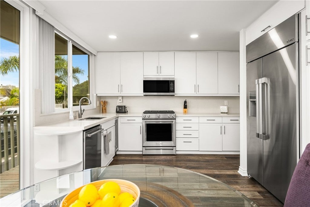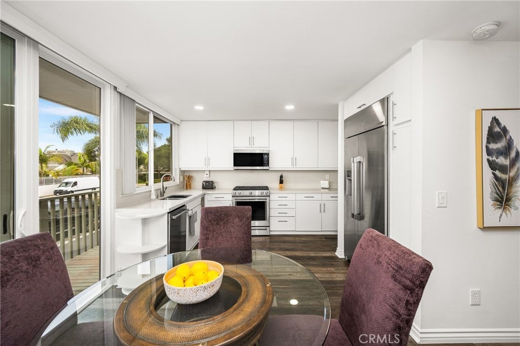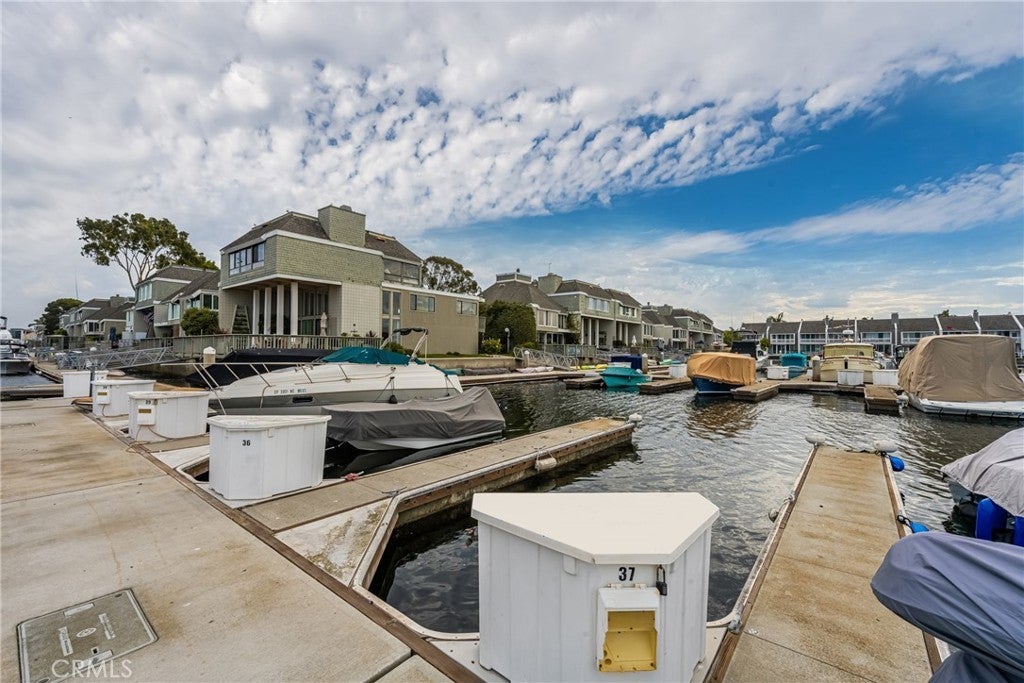New Price! Experience the best of Huntington Harbour living in this beautifully updated tri-level condo with a deeded 25-foot private dock just moments from your door. This 3-bedroom, 2.5-bath residence is located in a gated, resort-style community and has been thoughtfully remodeled to blend luxury with coastal comfort. Fresh paint, new light Berber carpet, and newer dual-pane windows create a light and airy feel throughout. The gourmet kitchen features white cabinetry, quartz countertops, and high-end KitchenAid appliances along with a built-in Dacor refrigerator. A formal dining area, breakfast nook, and spacious living room provide multiple options for gathering, while the lower-level family room with fireplace and bar opens directly to the private patio. The outdoor space is a true retreat with multiple seating areas, a fire pit, and a serene pond with a waterfall feature framed by lush greenbelts for privacy. Upstairs, the primary suite offers a spa-like, remodeled bathroom with a freestanding tub, dual vanities, and sleek contemporary finishes. A fully updated second bath features Carrara porcelain tile and modern details. Beyond the home itself, the community amenities include tennis, pickleball, and basketball courts, a sparkling pool and spa, and direct access to a sandy beach area for paddleboarding, kayaking, and sunbathing. This is a rare opportunity to enjoy a private dock, peaceful setting, and vibrant neighborhood in one of Huntington Harbour’s most sought-after enclaves.