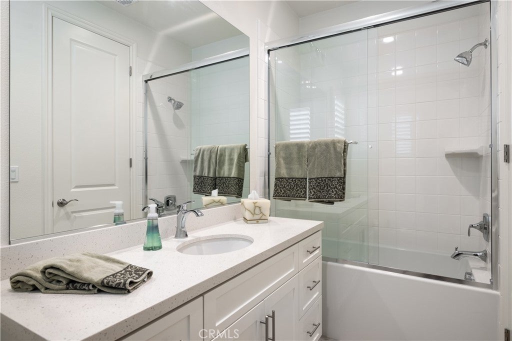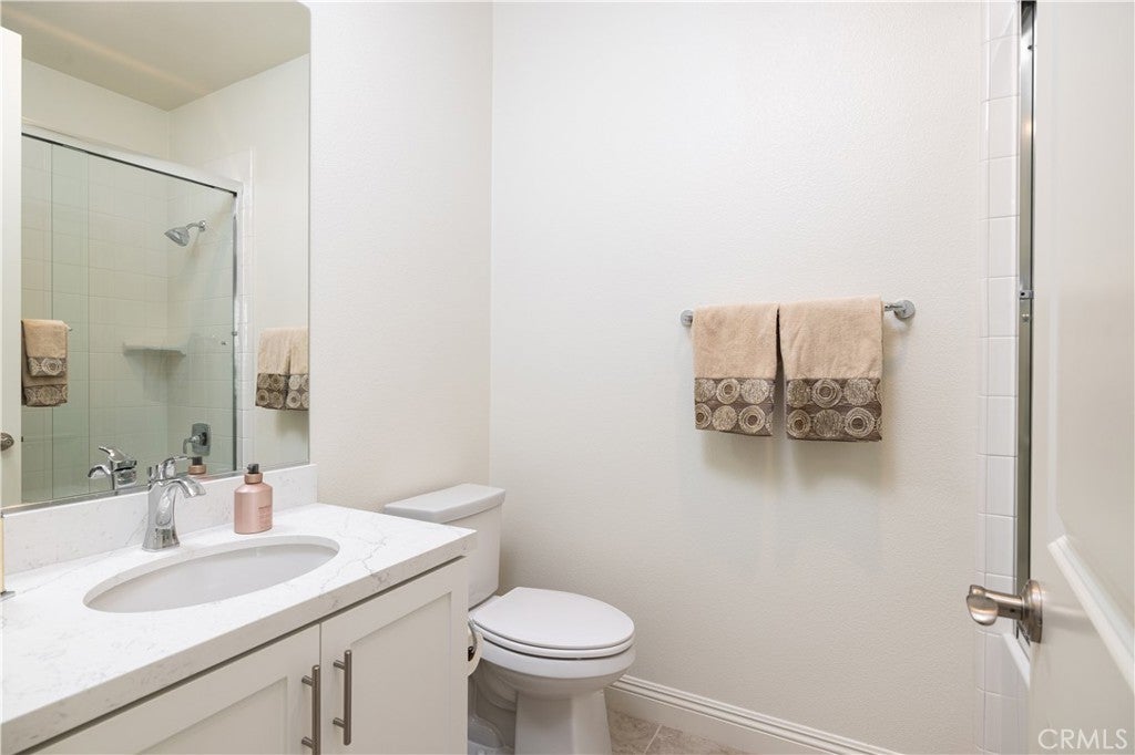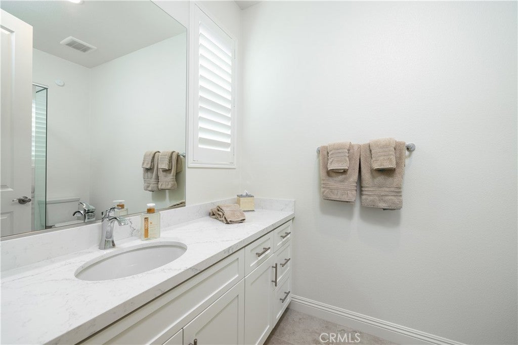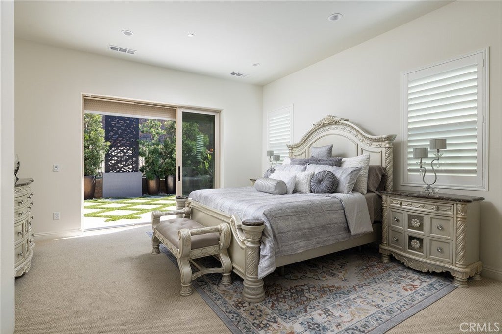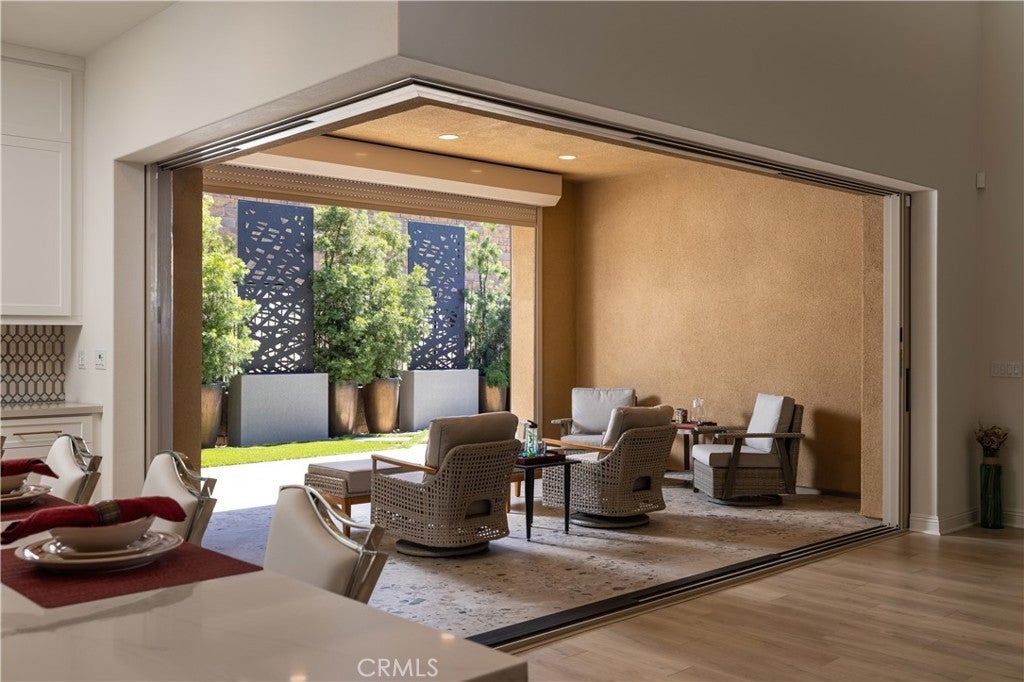 Newly built in 2022 within the coveted gated community of The Oaks at Portola Hills, this residence blends fresh contemporary design with everyday comfort. Under soaring ceilings, the great room opens through pocket sliding doors to the private backyard, creating a seamless indoor-outdoor connection. The kitchen features quartz countertops, a stone and porcelain mosaic backsplash, soft-close cabinets, a large eat-in island, and a walk-in pantry plumbed for a beverage cooler. Commercial-grade KitchenAid appliances include a six-burner gas cooktop with built-in electric grill and two full built-in ovens—all complemented by a fireplace-warmed dining area with a custom built-in lighted china cabinet, complete with remote and granite top. Flanking the fireplace, additional built-in displays with granite tops add style and function. Smart features include a motorized kitchen shade (remote- and app-controlled), a solar screen at the California room, and three Enviroblind security shields at the kitchen, California room, and downstairs primary slider—each with remote and hand-crank operation. Waterproof rigid core luxury vinyl oak plank flooring on the main level and primary bath, plantation shutters, and quartz finishes elevate the interiors. The main-level primary suite opens directly to the backyard and offers a spa-like bath with limestone slab-topped dual sinks, a walk-in shower, and a freestanding soaking tub. Upstairs, an en suite bedroom serves as a second primary, while a loft/media room provides space for entertaining or a home office. Two secondary bedrooms, currently used as offices, feature updated baths with quartz finishes and glass closures. The backyard combines stone and turf for an inviting, low-maintenance retreat. Additional highlights include seller-owned solar, Honeywell-controlled thermostats and garage doors, EV charging, instant hot water call buttons, and two garages: a two-car garage finished with marble-style epoxy flooring, plus a separate one-car garage ideal for parking or storage. Residents of The Oaks enjoy resort-style amenities, including a pool, clubhouse, BBQ area, dog parks, sports courts, and over 1.5 miles of hiking trails with sweeping views of Lake Forest and Trabuco Canyon. Convenient access to the 241 Toll Road and proximity to Irvine Spectrum complete this exceptional offering.