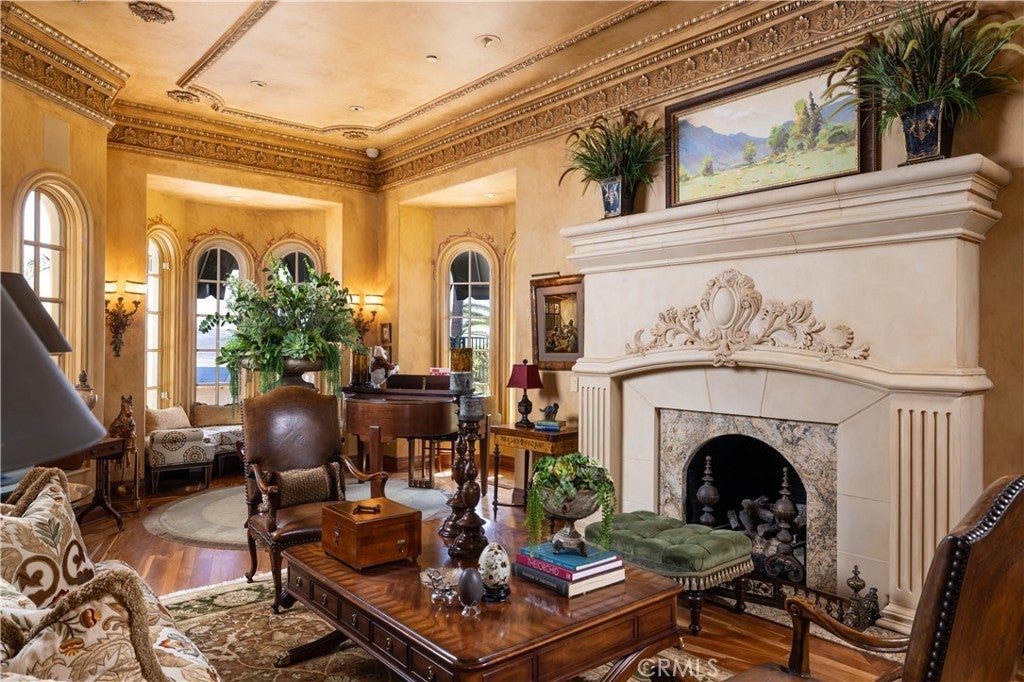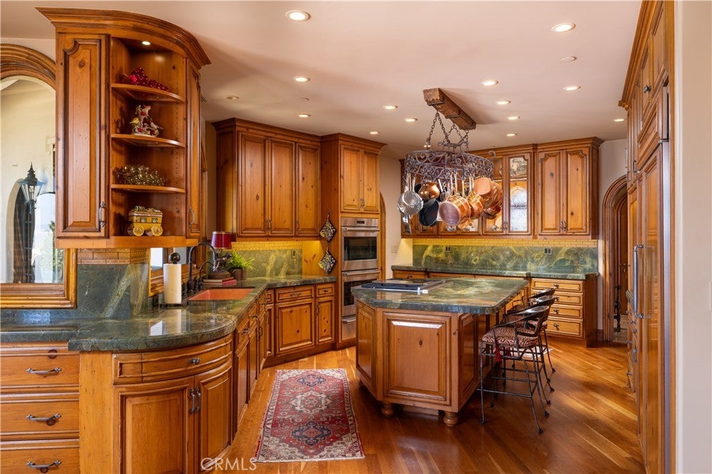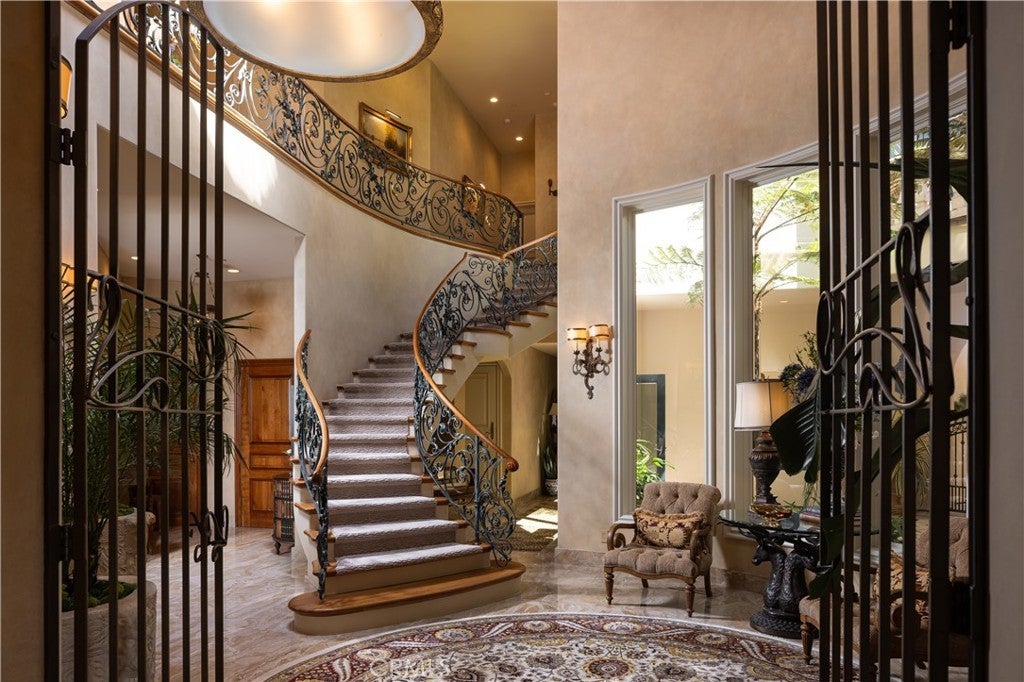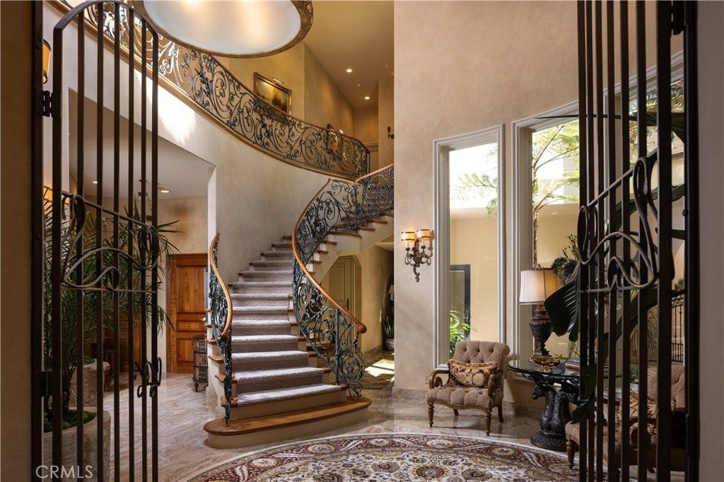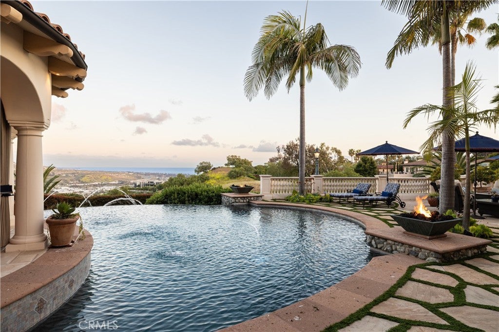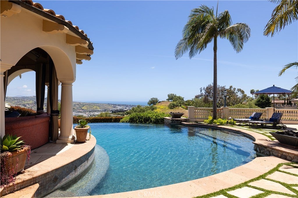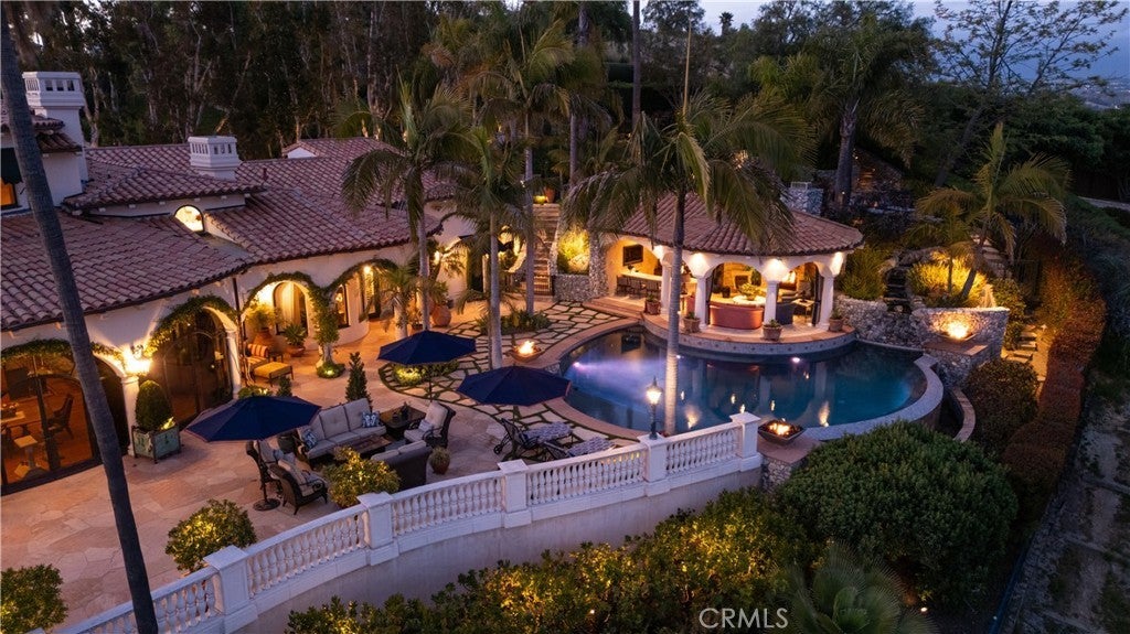The Heart of Bear Brand Ranch. An unrivaled estate set on nearly an acre of gated privacy, surrounded by untouched land and rolling hills, 19 Old Ranch Road is a rare jewel in the prestigious enclave. Masterfully designed in timeless Spanish architectural tradition, the residence is enveloped by mature, lush landscaping—towering trees, vibrant gardens, and meandering pathways that evoke the romance of European countryside estates or the glamour of Old Hollywood. With commanding views stretching across the Capistrano Valley, Saddleback Mountains, and out to the Pacific Ocean and coastline, this sanctuary offers an unparalleled sense of serenity and grandeur. Expertly crafted, passionately designed, and meticulously maintained, the home features expansive grounds that invite refined indoor-outdoor living. A stunning resort-style pool with a cascading waterfall takes full advantage of the sweeping vistas. Anchoring the outdoor experience is a fully appointed cabana complete with a fireplace, bar, and lounge—an entertainer’s dream and a private escape in one. Inside, the residence offers a flowing, functional floorplan with 6 expansive and curated bedrooms, each with it's own en-suite bathroom seamlessly blending elegance with comfort. The dramatic great room to the outdoor spaces through custom steel French door, while the formal living space showcases a statement fireplace, stunning seating arrangements, offering a sense of refined luxury. A warm, inviting family kitchen and an intimate dining room with coffered ceilings connect to a private courtyard adjacent to a palm-filled atrium. The main-level hosts a sumptuous primary-bedroom suite offering views, privacy and elegance with spa-like steam shower, soaking tub, and custom closets . A secondary guest retreat, a formal office, a fitness room, and multiple entertainment spaces. Upstairs, four additional guest suites offer unique features, including a private casita with separate entrance, kitchenette, and living area—ideal for multi-generational living or guests. Additional rooms include a playroom, bonus lounge, and two bedrooms with charming Juliet balconies. Thoughtful details abound: a custom wine cellar, sauna, pool bath, and hidden garden paths that lead to tranquil seating areas and moments of discovery. An elevated in-ground spa, romantic fountains, private firepit terrace draped by mature pepper trees, and dramatic gated porte-cochere with four-car garage add to the home's irresistible ambiance.