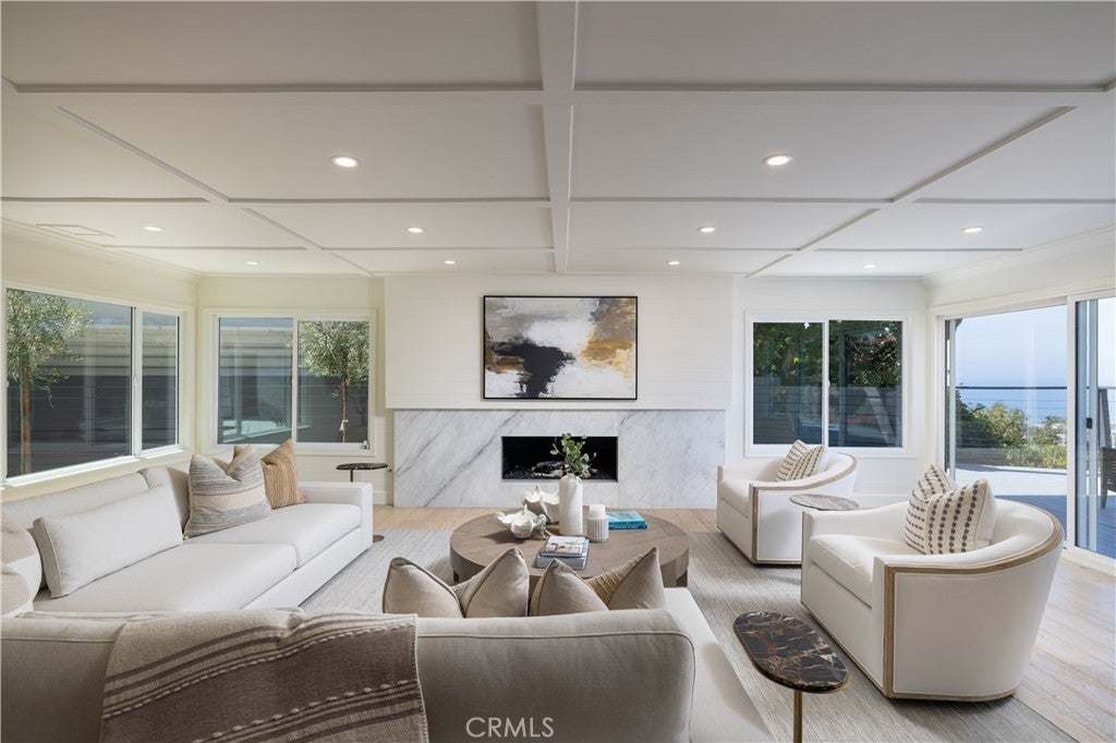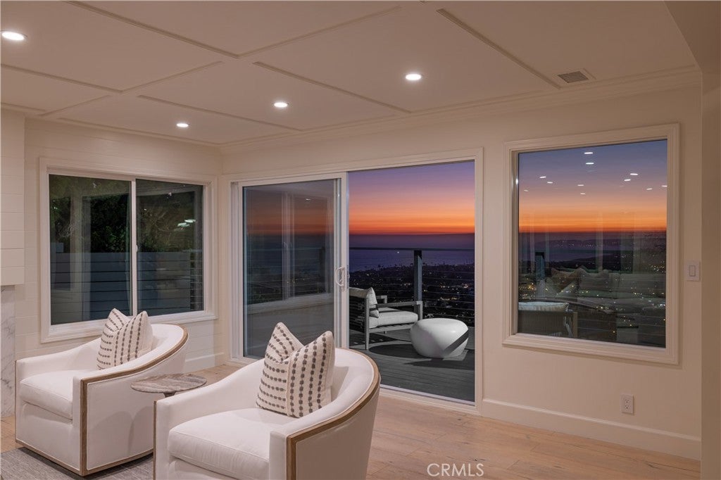 An elevated coastal sanctuary set atop a commanding bluff in Southeast San Clemente, 303 E Avenida Cordoba is a rare coastal estate where timeless design meets sweeping ocean grandeur. Framed by unobstructed vistas of the Pacific Ocean, Catalina Island, San Clemente Pier, Dana Point Harbor, and city lights, this six-bedroom, four-and-a-half-bath residence offers an exceptional living experience defined by space, serenity, and panoramic beauty. A gated entry leads to an expansive 12,390 square foot homesite, where a thoughtfully landscaped front courtyard creates a striking first impression and a perfect setting for refined outdoor entertaining. To the rear, an oversized deck and lounge area capture spectacular year-round sunsets while ocean breezes and lush surroundings create a tranquil outdoor retreat. Inside, the home's versatile layout spans two levels, featuring three bedrooms and two-and-a-half baths on the main floor, and three bedrooms with two additional baths upstairs. Four of the six bedrooms enjoy captivating ocean views. The primary suite is a tranquil retreat, with vaulted tongue-and-groove ceilings, exposed beams, a cozy fireplace, custom walk-in closet, and a spa-inspired bath—all framed by sweeping coastal panoramas. Every detail has been thoughtfully reimagined: from highly designed baths and bespoke vanities to custom wood paneling, premium appliances, new LED lighting, and curated fixtures. New custom carpet, full interior and exterior paint, and epoxy-coated garage floors enhance the home’s elevated aesthetic. The lush grounds offer privacy and calm, with mature trees, new drought-tolerant landscaping, decomposed granite gardens, a flat grassy pad, and a new irrigation system. A truly ideal setting for outdoor enjoyment and al-fresco dining, the yard also presents ample space for future expansion or personalization. The oversized garage—with a third bay for a golf cart or collector car—pairs with a long driveway to offer generous parking for residents and guests alike. Ideally located just minutes from San Clemente’s celebrated beaches, boutique shops, vibrant dining, and world-class surf, this exceptional residence blends relaxed California luxury with a rare sense of retreat. Graciously shown by appointment.