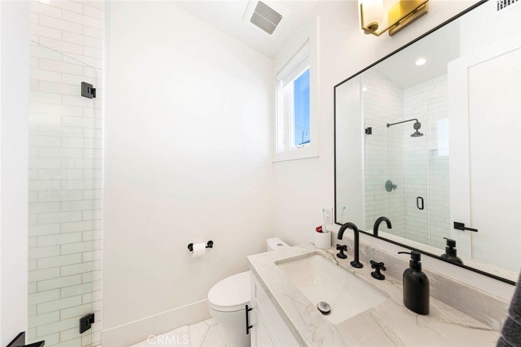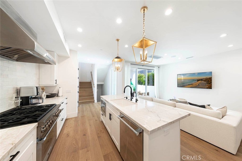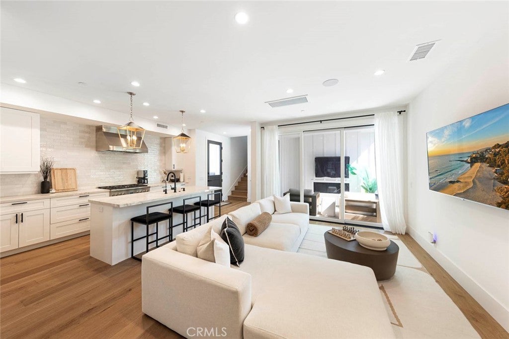 Modern Coastal Luxury in the Heart of Corona del Mar Village. Experience the perfect blend of style, comfort, and sophistication in this beautifully designed coastal modern home. With its superior finishes, thoughtful craftsmanship, and effortless flow, this residence is built to impress. Step through the charming Dutch door and into an open-concept floor plan that defines California indoor/outdoor living. The gourmet kitchen is a true showpiece, featuring custom cabinetry, subway tile backsplash, an oversized island, and top-of-the-line Thermidor appliances. Wide-plank wood flooring and natural stone details create a warm yet refined coastal-chic atmosphere throughout. The primary suite is tucked just off the main living area, offering a serene retreat with dual sinks, a freestanding soaking tub, and an enclosed rain shower, your very own spa-like sanctuary. Entertain or unwind on the private rooftop deck, where ocean breezes and endless sunsets set the perfect backdrop for lounging or gatherings. All of this is set within the sought-after Flower Streets, just a short stroll to pristine beaches, world-class dining, boutique shopping, and the vibrant lifestyle that makes Corona del Mar one of Southern California’s most desirable coastal communities.