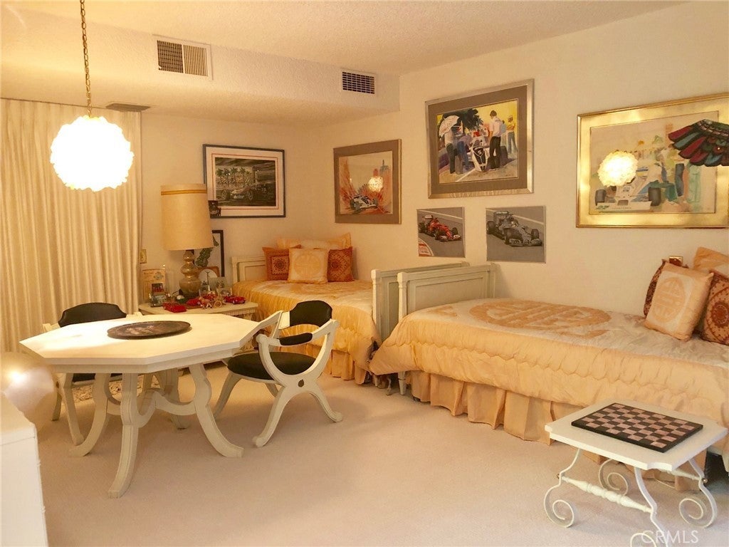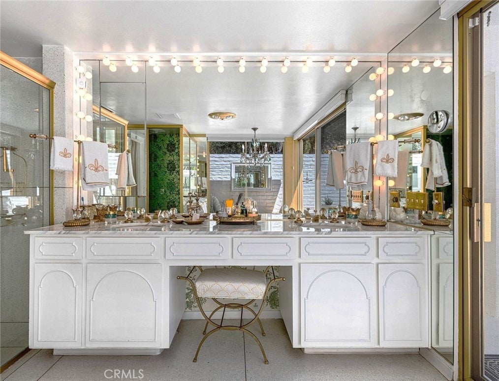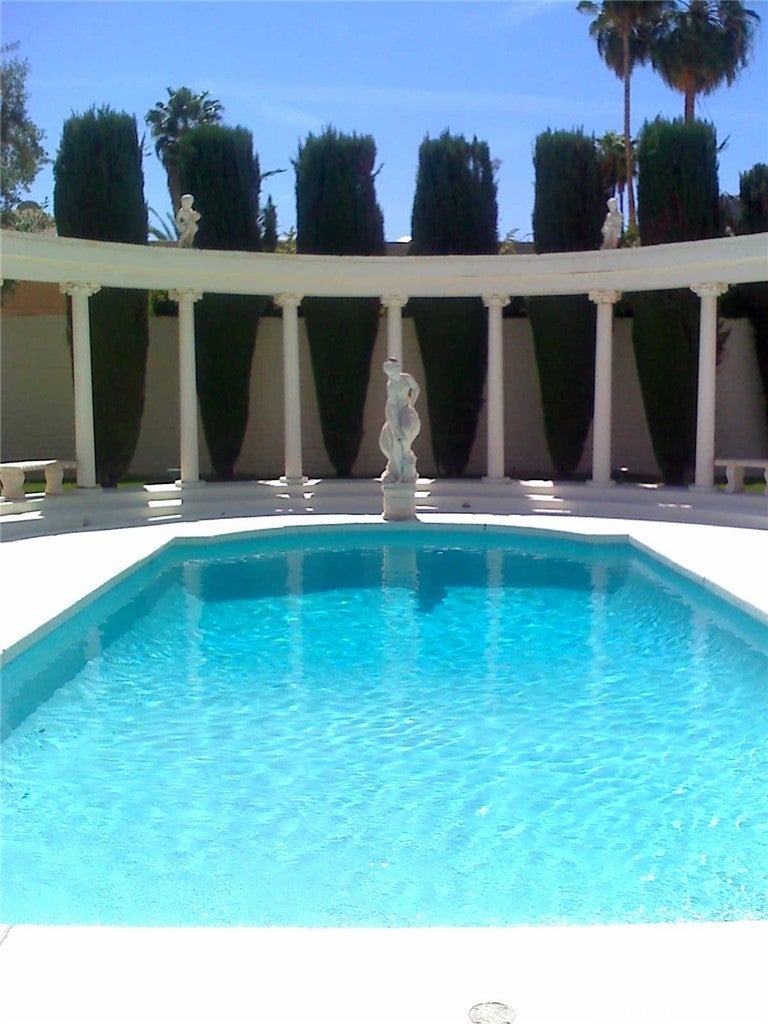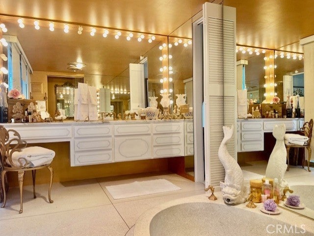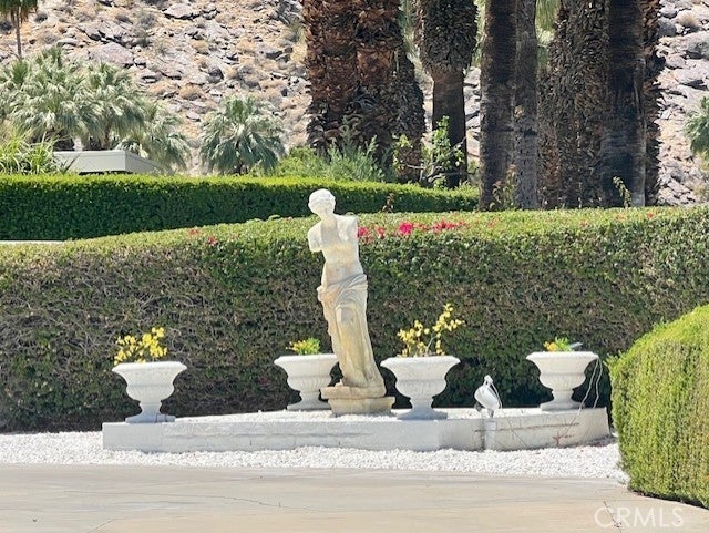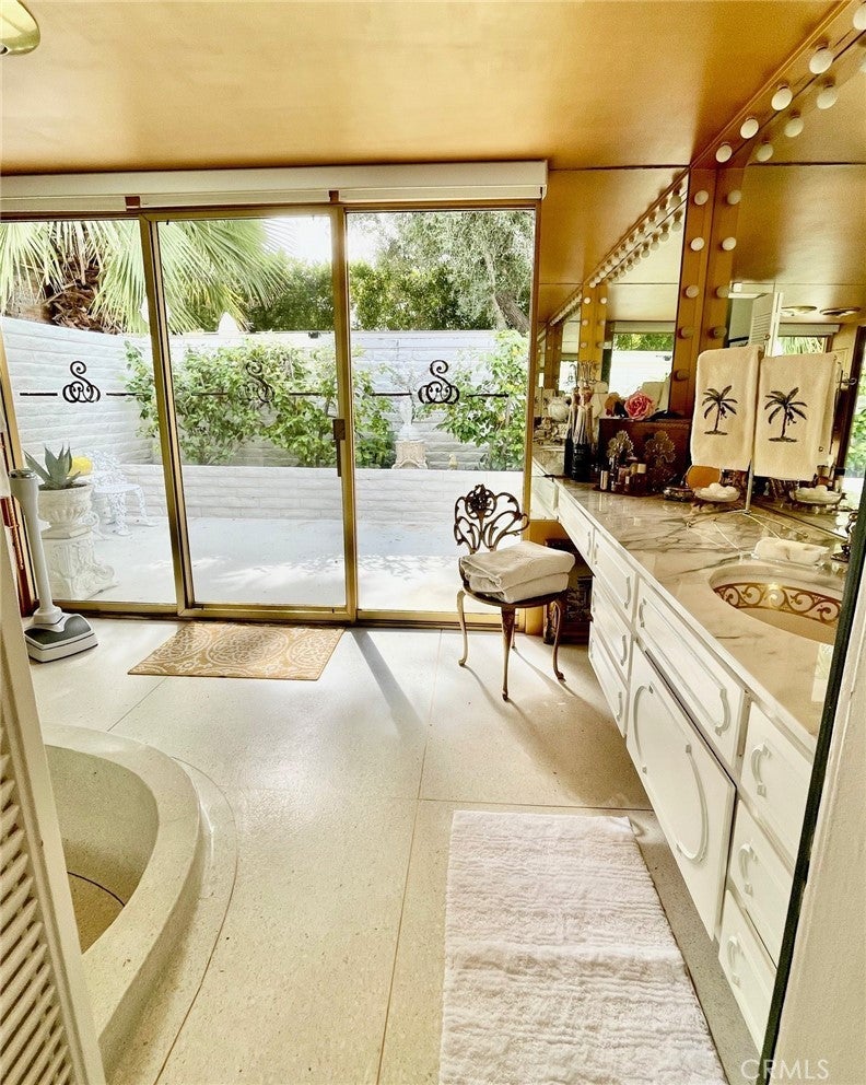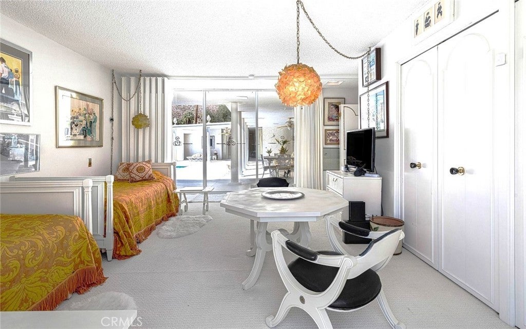 Step into a time capsule of mid-century modern perfection in the heart of Palm Springs! Designed by renowned architect John Outcalt, this 1965 gem on a 14,000 s.f. lot blends retro sophistication with seamless indoor-outdoor living. Just three blocks from downtown in the coveted Historic Tennis Club district, it offers stunning views of the San Jacinto Mountains. Beyond the double-door entry, an extra-large sunken living room welcomes you with a dramatic floor-to-ceiling marble fireplace, higher ceilings, and walls of glass. Original terrazzo flooring leads to the dining area, perfectly positioned next to a fabulous vintage wet bar. The adjacent kitchen features a walk-in pantry and a separate laundry area. Two oversized primary suites offer vintage luxury with terrazzo-clad baths, sunken tubs, and private patios. A third bedroom—ideal as a media room or guest retreat—includes twin beds, a desk area, and its own terrazzo shower/tub combo. Sliding glass doors in every bedroom open to the sun-drenched pool deck, where a sparkling pool, lounge space, and breathtaking mountain views create a dreamy retreat. Private patios, an attached two-car garage, 3 cabanas and an unbeatable location near top restaurants, the Agua Caliente spa, Palm Springs Art Museum, and the famous Thursday night street fair complete this timeless escape. Select furnishings are available for purchase to keep the vintage vibes alive. Furnishings available for purchase.