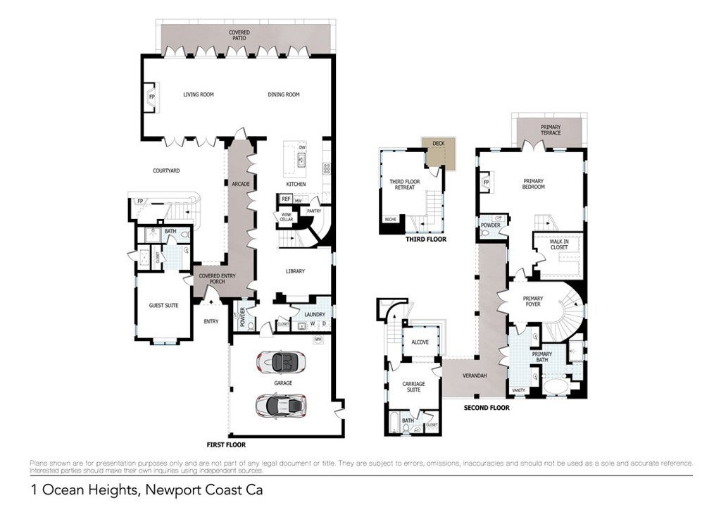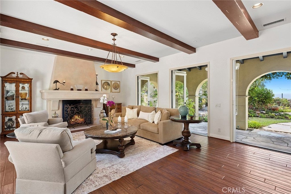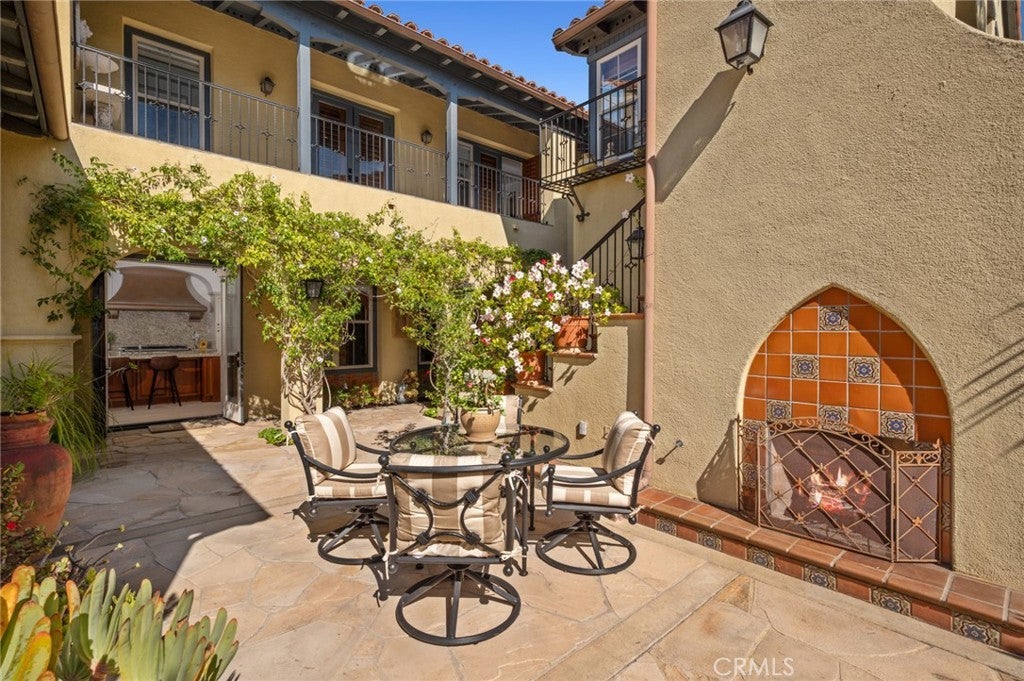 Perched within the prestigious guard-gated community of Ocean Heights, this exquisite estate offers sweeping vistas of the Pacific Ocean, Catalina Island, glittering city lights and mountain views. Thoughtfully designed for privacy and flexibility, the residence features separate entrances to a casita and a guest quarters—perfect for visiting family, extended stays, or a private home office. The upper level of the main house is devoted to a grand primary suite, complete with a cozy fireplace, spacious walk-in closet, and a luxurious bath retreat—all framed by the property’s breathtaking views. A third-floor flex space off the primary suite provides an ideal area for a gym, art studio, or private office. Inside, timeless architectural details—such as exposed wood beams, French doors, and rich hardwood flooring—create a warm, elegant ambiance. A gourmet kitchen with high-end appliances opens to a private inner courtyard with fireplace and a charming fountain, ideal for morning coffee, casual meals, or intimate gatherings. Designed for seamless indoor-outdoor living, the backyard retreat features private terraces, BBQ, a fireplace, a fountain, a fire pit, lush landscaping, and a spa, all overlooking some of the most commanding views in Newport Coast. From sunrise to sunset, every moment is elevated by the dramatic scenery. Living in Ocean Heights offers more than a home—it provides a coveted lifestyle. Residents enjoy 24-hour guard-gated security, meticulously maintained grounds, and proximity to award-winning schools, Crystal Cove State Beach, Pelican Hill Resort, and premier dining and shopping at Fashion Island and South Coast Plaza. This property exemplifies luxury, privacy, and the quintessential coastal California experience.