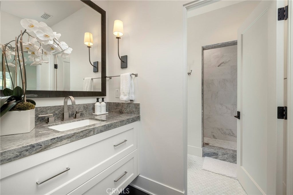 Nestled within the prestigious 24/7 guard-gated and patrolled enclave of Crystal Cove, this beautifully upgraded and finely appointed residence offers the perfect balance of elegance, comfort, and resort-like amenities. With 4 bedroom suites and 4 ½ bathrooms, the home presents a light-filled, open floor plan designed to seamlessly connect indoor and outdoor living. The expansive flat main level features formal dining and living rooms, a gourmet kitchen, and a powder room, all flowing effortlessly to the rear courtyard anchored by an inviting outdoor fireplace. A private front courtyard leads to the detached guest casita above the two car garage with separate one car garage aside it, ideal for visitors or extended stays. The serene master suite enjoys sweeping views of the rolling California coastal canyons, complemented by a spa-like bathroom and finely appointed wardrobes. Expansive common areas and thoughtfully curated outdoor spaces invite year-round living and entertaining. The grounds are a true sanctuary, beginning with a turfed front lawn framed by mature, manicured landscaping and a tranquil water feature. In the rear, a resort-inspired pool with a baja shelf, spa, and cascading water features is surrounded by a bocce ball court, practice putting green, covered loggia dining area, BBQ pavilion, and multiple lounge spaces all hedged for maximum privacy and overlooking breathtaking canyon vistas. Crystal Cove residents enjoy access to the exclusive 2.5 acre Canyon Club, featuring swimming, tennis, basketball, meeting and entertaining spaces, along with four parks, lush green belts, and scenic hiking trails. Just outside the gates, the Crystal Cove Promenade offers premier dining and shopping within easy walking distance, while Crystal Cove State Beach lies just across Pacific Coast Highway.