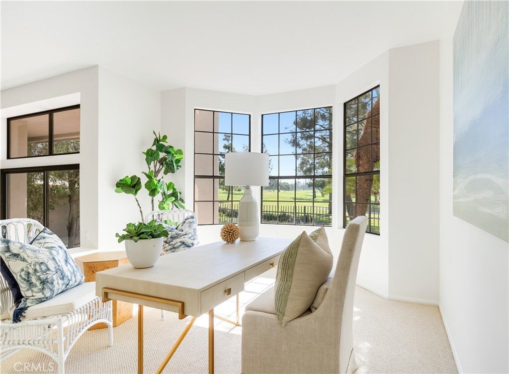 Perfectly positioned on the 17th hole of Newport Beach Country Club, this elegant 2,585-square-foot residence within the 24-hour guard-gated community of Sea Island captures both serenity and striking golf course views. With 2 bedrooms, 2.5 bathrooms, flex room and bar, this home is designed for comfortable living and graceful entertaining. The main living room is anchored by a fireplace and expansive windows that frame golf course views and open to a large private patio, ideal for entertaining or quiet mornings with a view. The adjoining dining area overlooks both the living space and the fairways, while the kitchen enjoys abundant natural light and its own casual dining nook. Upstairs, the primary suite is a private sanctuary, complete with a large walk-in closet and luxurious bathroom featuring dual vanities, a large soaking tub, and separate shower. Step outside to the relaxing deck, providing another vantage point across the rolling greens. The additional bedroom and bathroom offer space for guests and the downstairs flex room offers versatility for a home office, media space and more. As part of Sea Island, you’ll enjoy resort-style amenities including two pools and spas, two tennis courts, a clubhouse, all just steps away. Beyond the gates, take in the best parts of Newport Beach, Fashion Island, Balboa Island, Back Bay, fine dining, shopping, and convenient freeway access are all nearby. 20 Ocean Vista offers not just a home, but a refined coastal lifestyle at the heart of Newport Beach.