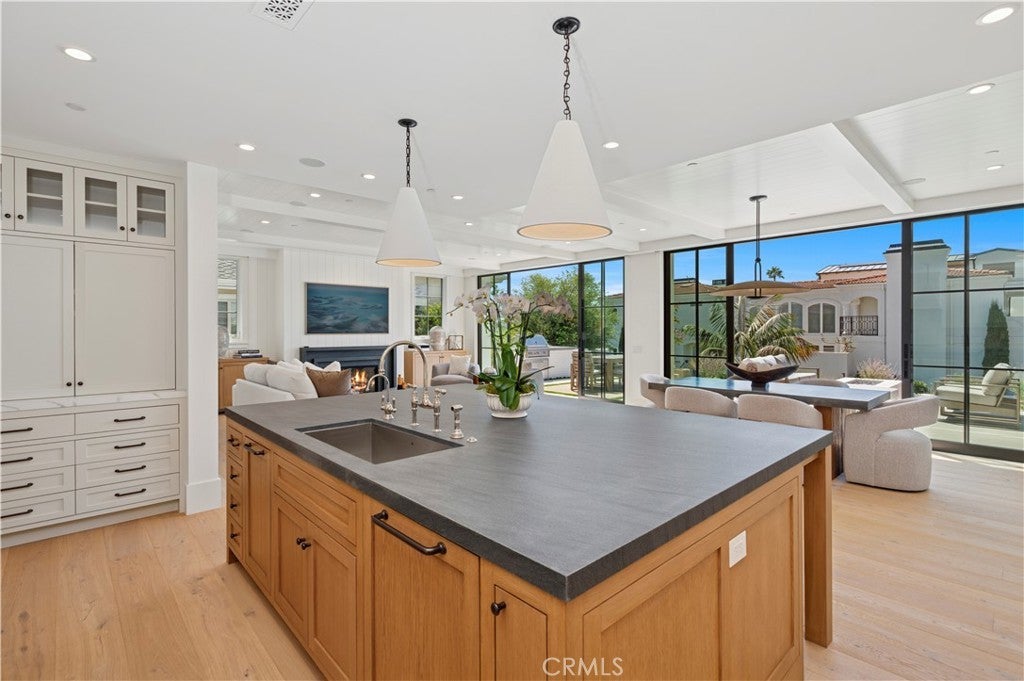 Thoughtfully designed by renowned Brandon Architects and expertly built by Legacy Custom Homes, this brand-new, FULLY FURNISHED, custom masterpiece is just moments from the sand and offers 3 bedrooms and 3.5 bathrooms across a flowing, open-concept floor plan. Wide-plank white oak flooring runs throughout, lending warmth and continuity to every space. Expansive walls of glass flood the interiors with natural light and foster a seamless indoor-outdoor connection, epitomizing refined coastal living. The quintessential Corona del Mar front patio features a built-in fireplace and opens through disappearing doors to a welcoming living room with its own fireplace and custom built-ins. At the heart of the home, the gourmet kitchen is anchored by a dramatic honed granite island with seating, and equipped with an 8-burner range and pot filler, extensive cabinetry, and a walk-in butler’s pantry with prep sink, generous storage, appliance garage, and built-in microwave. Motorized drapery and curated designer finishes enhance both comfort and sophistication. Additional amenities include a mudroom conveniently located off the two-car garage and a spacious laundry room with sink, countertops, and custom cabinetry. The primary suite is a true retreat, complete with sweeping ocean views, a cozy fireplace, custom built-ins, an oversized walk-in closet, and a spa-caliber bathroom with soaking tub, dual-sink vanity, and walk-in shower. The home’s expansive rooftop terrace provides a built-in barbecue and panoramic views that span the ocean, harbor, Catalina Island, and sparkling city lights. Perfectly positioned near Corona del Mar’s iconic beaches, scenic China Cove, and the village’s acclaimed dining and boutiques, this is a rare opportunity to lease a brand-new coastal haven in one of Orange County’s most desirable neighborhoods.