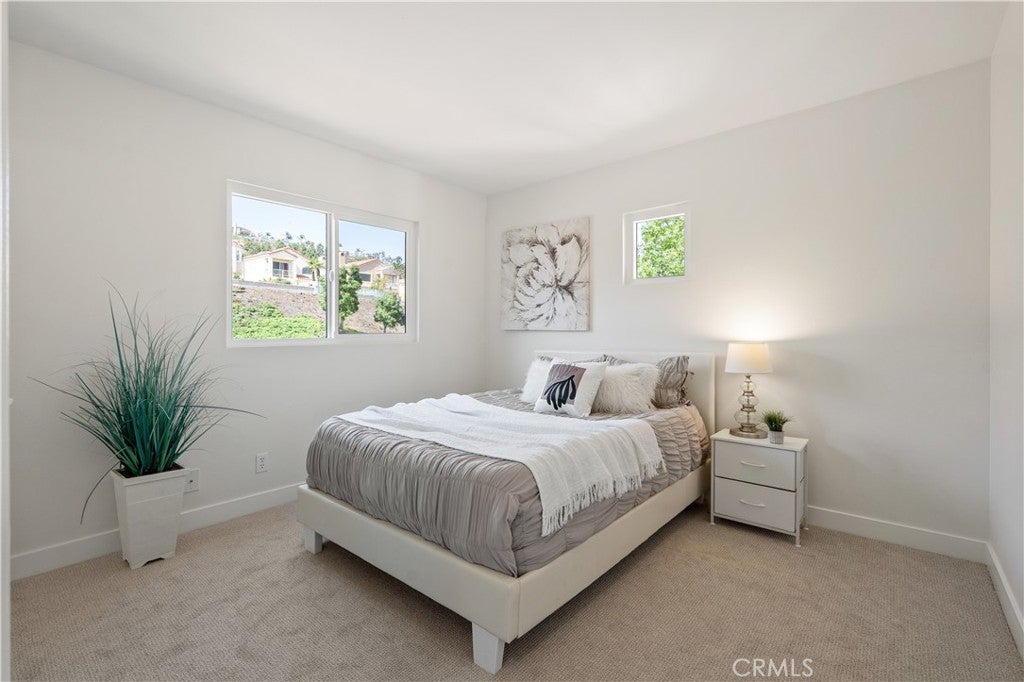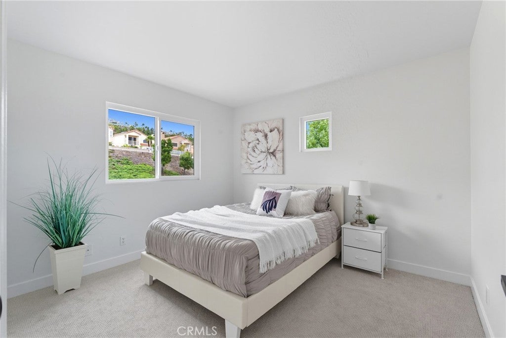 Step into resort-style living at this meticulously updated MODERN 3-bedroom, 2.5-bath home in the coveted Country Club Vistas of Niguel Summit. Situated on a single-loaded cul-de-sac, this residence offers unmatched privacy and breathtaking views—soak in sweeping mountain and partial OCEAN views from key living spaces and the tranquil backyard patio. The property features a privacy gate, adding an extra layer of seclusion and security to its already private setting. Inside, the home feels bright and open, with high ceilings, a cozy fireplace, and nice new floors. The kitchen is updated and has brand-new stainless steel appliances and quartz countertops, making it perfect for cooking and entertaining. Upstairs, the main bedroom has a relaxing bathroom, a walk-in closet, and a private balcony with amazing views. The home has skylight in the dining room area and pimary bathroom which brings a lot of natural light. You’ll appreciate the new smart garage door opener and entry lock system that use wifi and Bluetooth for easy and safe access. The new HVAC system and appliances all come with full warranties for your peace of mind. The yard has new landscaping and fresh grass that look great and need very little care and the backyard patio is a great place to relax or host friends, surrounded by well-kept plants and cool ocean breezes. The large two-car garage gives plenty of space for storage. Close to parks, trails, restaurants, shopping, and just 5min of driving to nearest beaches! This home is move-in ready with stunning views and many new features. Don’t miss the chance to see this special home in person and make it yours!