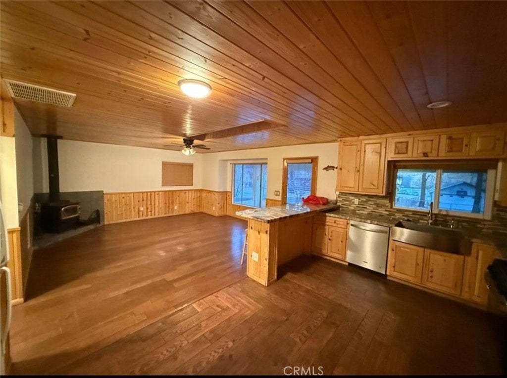 Charming mountain cabin ideal as a full-time residence or peaceful second home. The updated kitchen features beautiful granite countertops and stainless-steel appliances, opening to a cozy living room with a freestanding wood-burning stove—perfect for chilly nights. Both bathrooms have been completely remodeled with quartz counters, tile flooring, and stylish finishes. The enclosed front porch offers a wall of windows for enjoying the snowfall in comfort, while a convenient rear mudroom helps keep the home spotless after outdoor adventures. The converted shed provides extra space for a guest room, office, or hobby area. A fenced backyard is great for pets, and two driveways offer generous parking for up to five vehicles. Whether you’re seeking a serene retreat or a year-round mountain lifestyle, this cabin delivers warmth, comfort, and character.