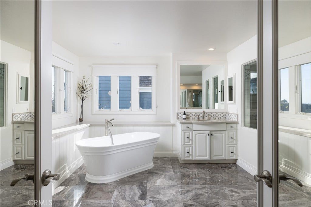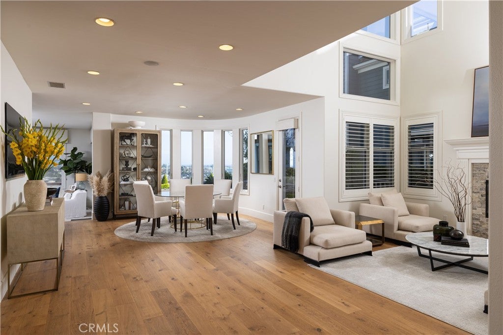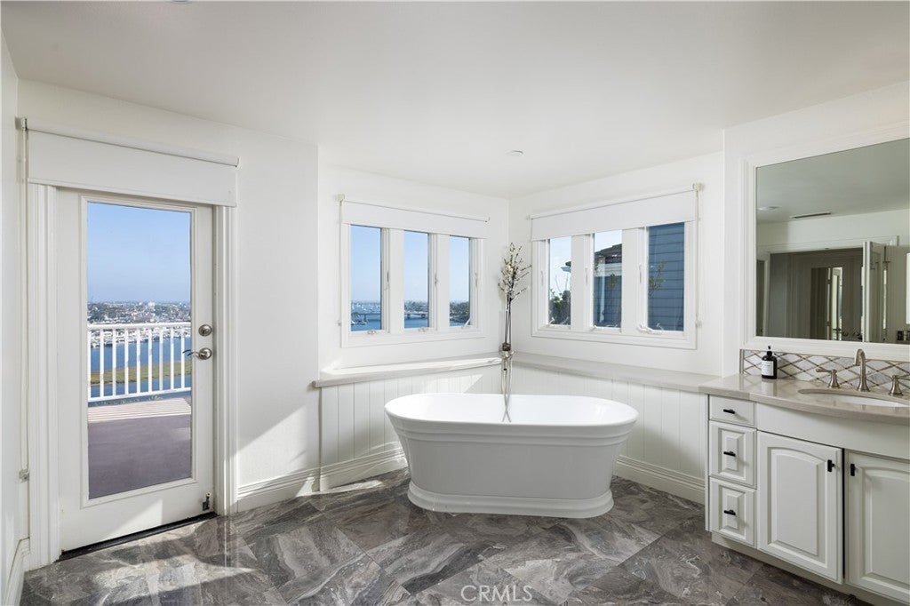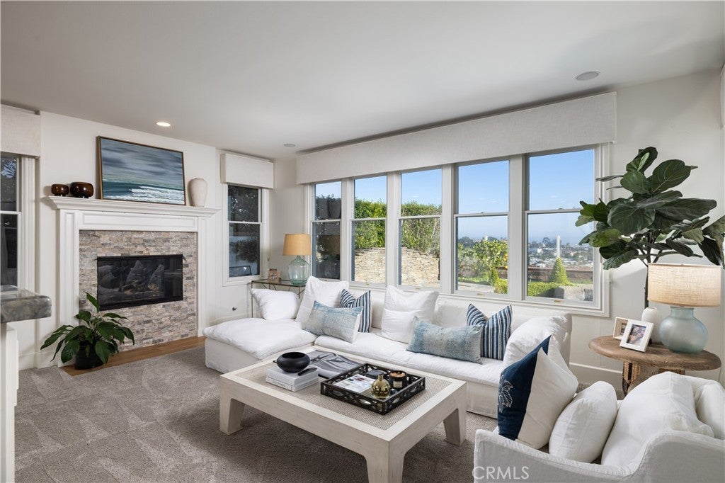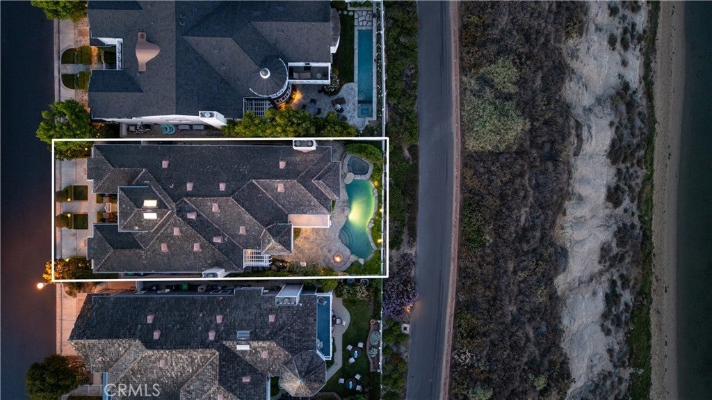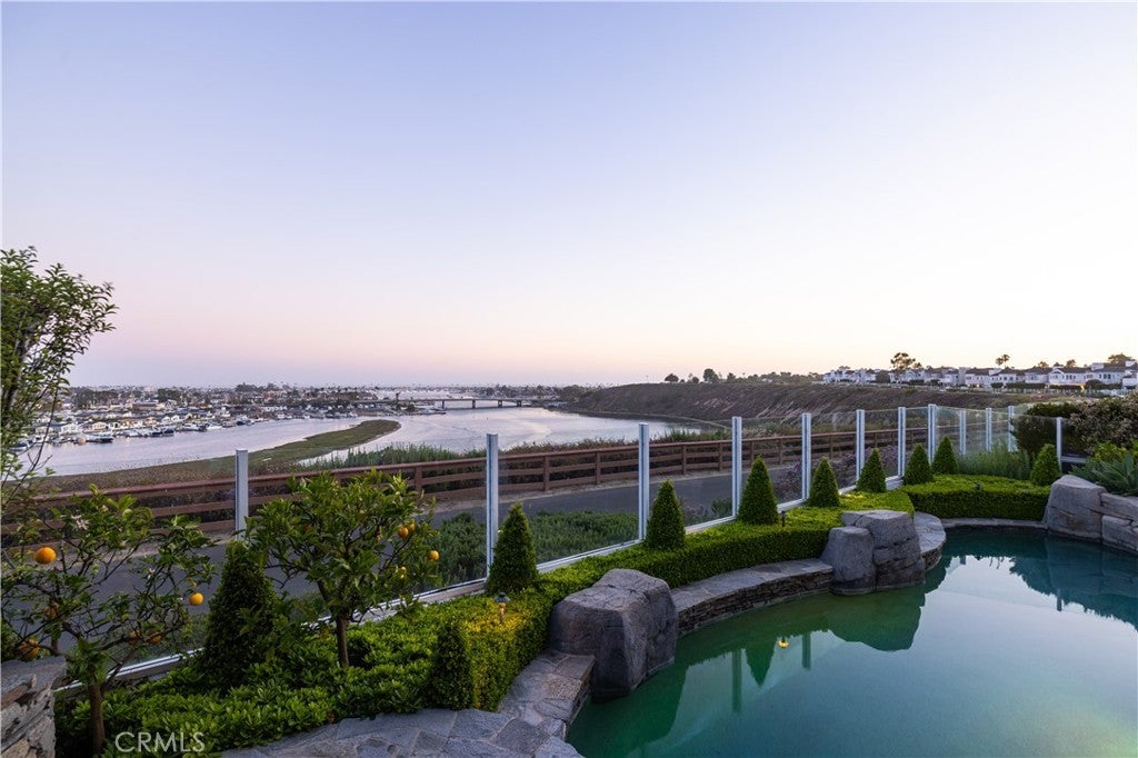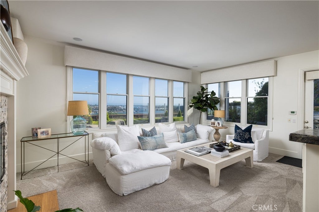 Perched blufftop, front row center in the coveted guard-gated Castaways community, this stunning Cape Cod-style residence showcases breathtaking, unobstructed vistas of the harbor, bay, Pacific Ocean, Catalina Island, city lights, and back bay. Behind a timeless coastal façade, a grand two-story entry welcomes guests with soaring ceilings, a dramatic staircase, and an open-concept layout designed to frame the views at every turn. The sunlit great room flows seamlessly into the formal dining area and a chef’s kitchen outfitted with professional-grade Viking appliances, custom cabinetry, quartz countertops, a large center island with 6-burner cooktop, and a built-in breakfast nook. Designed for effortless indoor-outdoor living, the entertainer’s backyard features a PebbleTec saltwater pool, elevated spa with waterfall, firepit, built-in BBQ, and expansive stone patio—all set against a striking ocean backdrop. Upstairs, the spacious primary suite captures panoramic ocean views and offers a cozy fireplace, private view deck, and a spa-inspired bath with free-standing tub, double-headed Carrara marble shower, dual vanities, and custom walk-in closet. Two additional upstairs guest bedrooms share a jack-and-jill bath and a versatile den can easily serve as a fourth bedroom. An adjacent loft office provides the ideal work-from-home space with tasteful built-ins and captivating water views. Additional highlights include an elevator, three fireplaces, newer wide-plank oak flooring, epoxy-coated garage floors with built-in cabinetry, and a brick-accented driveway. With direct access to scenic hiking and biking trails and just minutes from world-class beaches, shopping, and dining, this home embodies the best of Newport living.