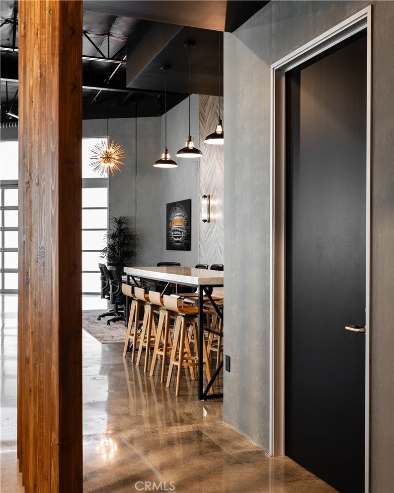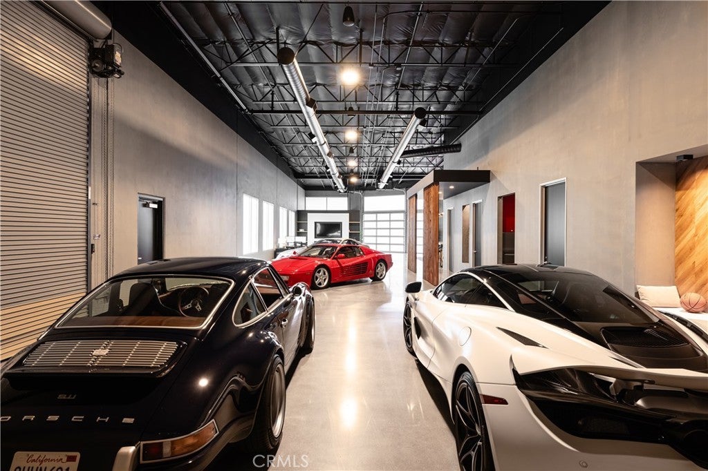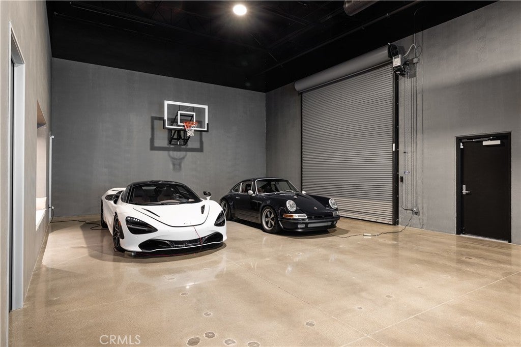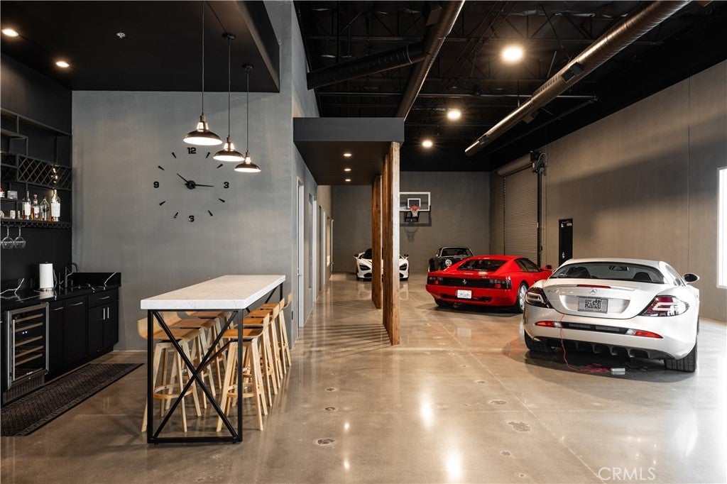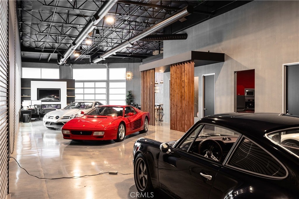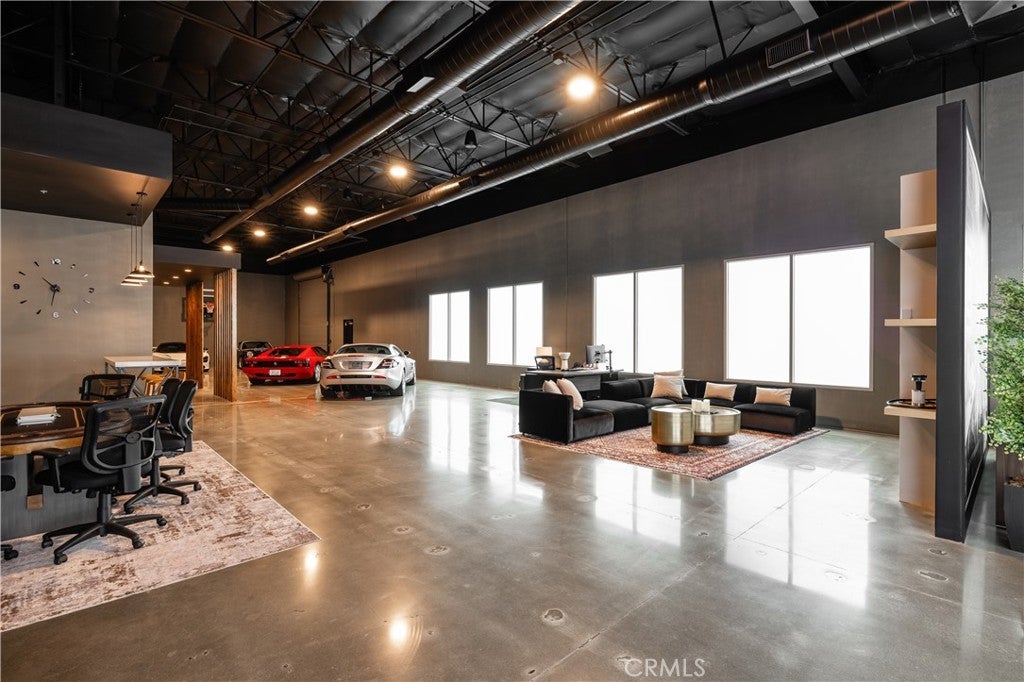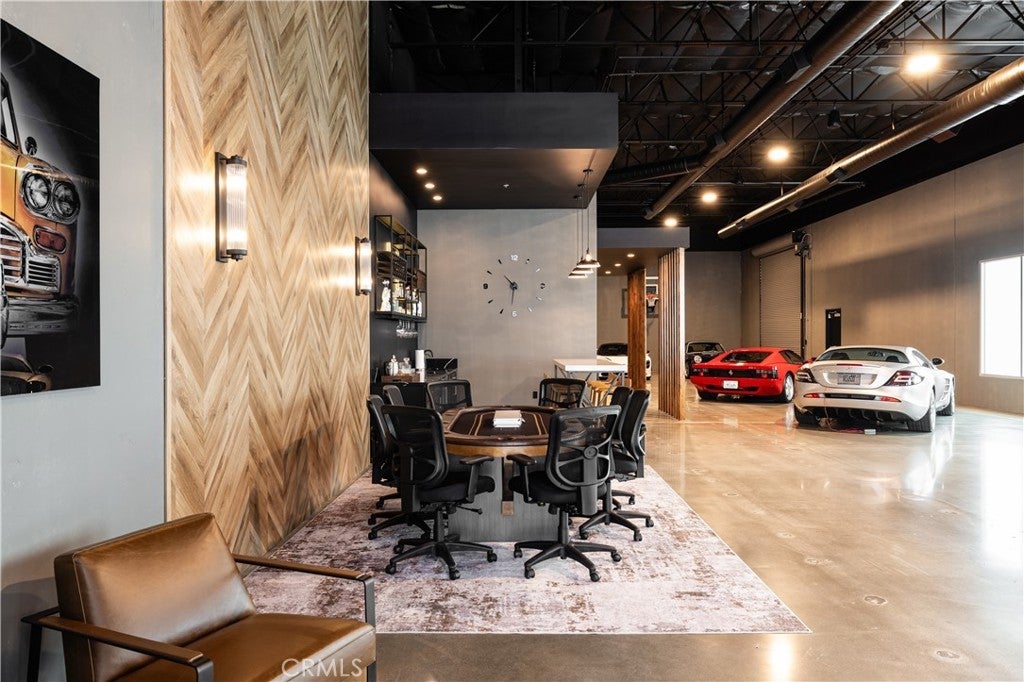 Stunning and Highly Upgraded Flex Condo — 3,763 Sq. Ft. of Open, Versatile Space! This exceptional flex condo offers 3,763 square feet of beautifully designed and thoughtfully upgraded space, ideal for both business or personal use. Featuring two roll-up garage doors one in front and one in back, fire sprinklers, full insulation, electrical and plumbing upgrades, HVAC, reverse osmosis system, security system, and an EV charger—every detail has been carefully considered for functionality and comfort. The interior design showcases custom cabinetry with matching slab surfaces, a striking herringbone feature wall, sound system, Poker Table and cushion, Basketball hoop, UFO lighting, bar area, fireplace, and a soup faucet with sink for added convenience, Two gorgeous marble bathrooms elevate the space with luxurious finishes. A fully equipped break room includes a refrigerator, sink, microwave, Meile Coffee Machine, marble table, and shelving, making it perfect for team gatherings or private relaxation. Whether for business, entertainment, or personal enjoyment, this highly upgraded flex condo offers an impressive blend of sophistication, comfort, and versatility.