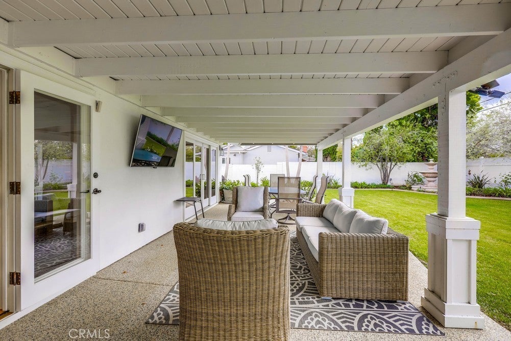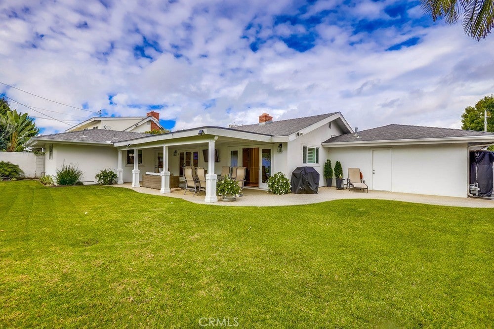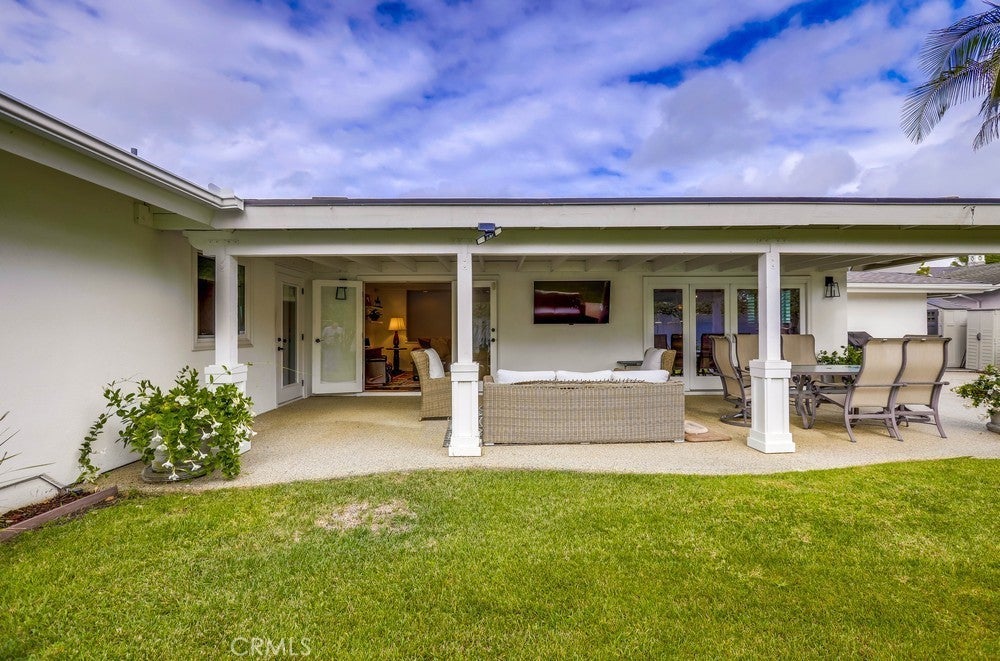 PENDING SALE, BACK-UP OFFERS WELCOME. Just what you have been waiting for...stunning and so serene single level right in the heart of Mesa Verde's most desired "Inner Loop" and just steps to Mesa Verde Golf and Country Club too! Open, bright and spacious, you will be delighted by the features of this irresistible residence. Featuring 4 bedrooms, 2 full baths, & including fine upgrades throughout. Newer roof, stainless steel Thermador appliances, wood flooring, custom window coverings, marble, quartz, crown moldings, wainscoting, gorgeous expanded primary bathroom with accessible roll-in shower. Gas and wood-burning fireplace, formal dining room and breakfast counter too. All flowing out to the serene and beautiful lushly planted grounds. Al fresco dining under the pebbled covered patio, the splashing fountain, fruit-bearing orange tree and watching your favorite sports or TV show on the included outdoor TV. All this and near fine restaurants, outdoor cafes, bike trails, golf, schools, parks and freeway access. Also nearby is the spectacular Performing Arts Center, world-class shopping at South Coast Plaza and miles of sandy beaches, crashing waves and sparkling bays. Live your dream in this great Americana community...Best to get in on this one! See supplement