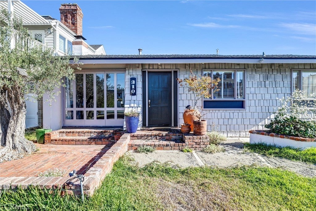 A rare opportunity in the heart of Corona del Mar's Village—310 Marigold Avenue sits on an oversized 5,310 sq ft lot with 45 feet of frontage, and includes approved plans to build a stunning ~ approximately 4,400 sq ft custom home by acclaimed Newport Beach architect Mark Teale. The existing residence is a well-maintained mid-century gem, offering dual primary suites, a 3-car tandem garage, and excellent location. The kitchen features custom African Walnut cabinetry, vintage tile backsplash, and appliances—perfectly blending timeless charm with modern convenience.