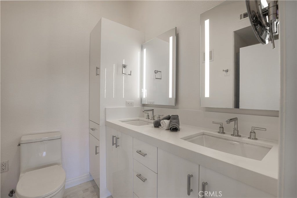 Live just 3 miles from the beach in this stunning, recently remodeled 2-story condo that blends luxury, comfort, and coastal charm! This unique unit is one of the few in the community that offers incredible panoramic views where you can see all the way to the ocean from both the private balcony and upstairs master suite. Step inside to find freshly painted interiors and luxury vinyl flooring throughout, offering a clean, modern aesthetic that's both stylish and durable. The open-concept living area showcases a custom-designed entertainment console and elegant wine bottle fixtures, perfectly complemented by a Sub-Zero wine fridge that holds up to 30 bottles ideal for entertaining in style.Each of the dual en suite master bedrooms is thoughtfully located on opposite sides of the home, providing privacy and comfort perfect for roommates, guests, or a home office setup. Both upstairs bathrooms have been fully upgraded with high-end finishes and spa-like details. Every room features custom ceiling fans, combining functionality with designer flair. Enjoy your morning coffee or evening wine while taking in sweeping views from your private balcony, overlooking the beautiful El Niguel golf course, with a serene lake in the foreground and a majestic mountain backdrop beyond. You'll be surrounded by picturesque, resort-style scenery that changes beautifully with the light throughout the day. Don't miss this rare opportunity to embrace coastal living in a beautifully upgraded condo with views that truly set it apart.