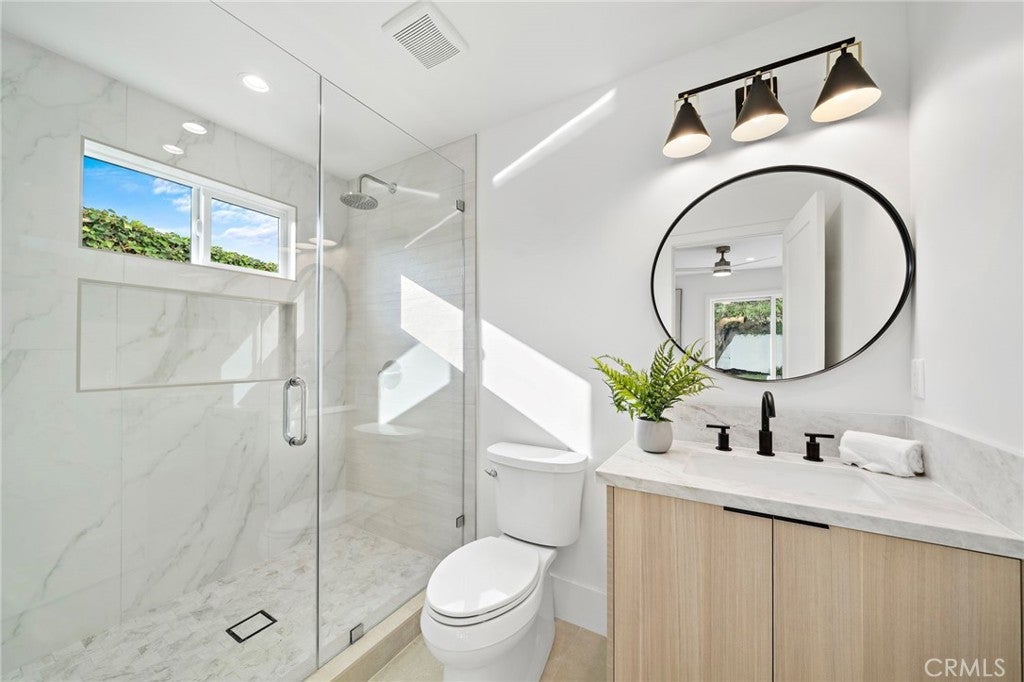 Welcome to a breathtaking modern coastal residence, completely renovated and fully permitted by the City of Huntington Beach. Nestled in a prime location, just minutes away from the pristine shores of Huntington Harbour. Step into a light-filled great room, where the seamless blend of indoor and outdoor living creates a harmonious atmosphere. The kitchen is a culinary masterpiece, featuring a spacious island with Taj Mahal quartz surfaces, custom oak cabinetry with soft-close hardware, and top-of-the-line Thor appliances. The rich white-oak flow-through flooring extends throughout the main living areas, adding warmth and elegance to the space. Every system in this home has been replaced to ensure optimal performance and code compliance. From new electrical wiring and panel to a fully replaced HVAC system and ducting, every detail has been meticulously crafted to perfection. Retreat to the luxurious primary suite, where a spa-inspired bath awaits. Indulge in the oversized walk-in shower and separate soaking tub, creating a sanctuary of relaxation. Additional baths have been beautifully remodeled, featuring designer fixtures, Taj Mahal quartz vanities, and refined tiling that enhances the overall aesthetic. Outside, the grounds are designed for entertaining and relaxation, offering generous space and seamless indoor-outdoor flow that embodies modern coastal living. This isn’t just a renovation; it’s a complete re-imagining of what home can be in Surf City.