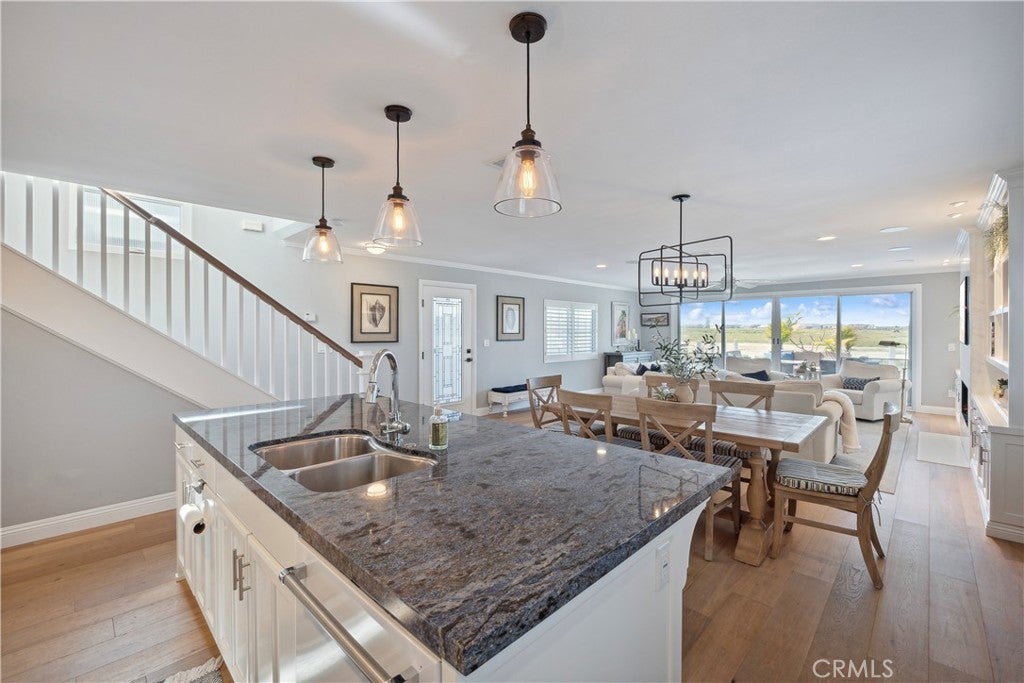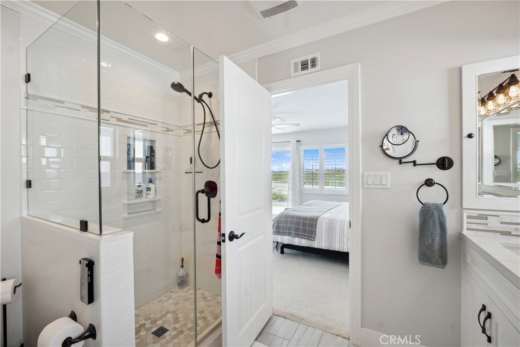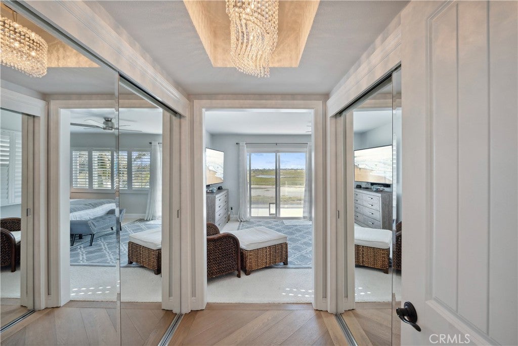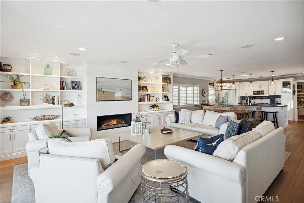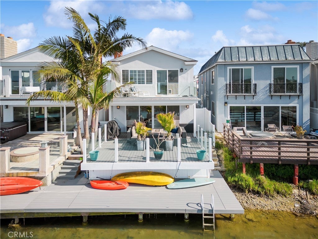 Experience endless water views and refreshing ocean breezes from this elegant four-bedroom, three-bath canal-front residence in Newport Shores—just two blocks from the beach. The spacious kitchen, appointed with quartz countertops, flows seamlessly into the open dining and living areas, both extending to a canal-facing deck ideal for entertaining or unwinding by the water. The primary suite features dual closets, a spa-inspired bathroom, and a private balcony spanning the length of the home, capturing captivating canal views. A desirable main-level bedroom with an en-suite bath complements two additional upstairs bedrooms, each showcasing designer finishes, generous closet space, and beautifully updated baths. A versatile bonus room with a built-in coffee bar opens to a private deck, offering a perfect space for relaxation or a home office. Additional highlights include air conditioning, a two-car garage with built-in storage, and extra exterior parking. Residents of Newport Shores enjoy an exceptional array of community amenities, including a pool, tennis, pickleball, volleyball, and basketball courts, as well as a playground, clubhouse, and BBQ area. Blending refined coastal design with an active beachside lifestyle, this home offers the ultimate Newport Beach living experience—just moments from the sand.