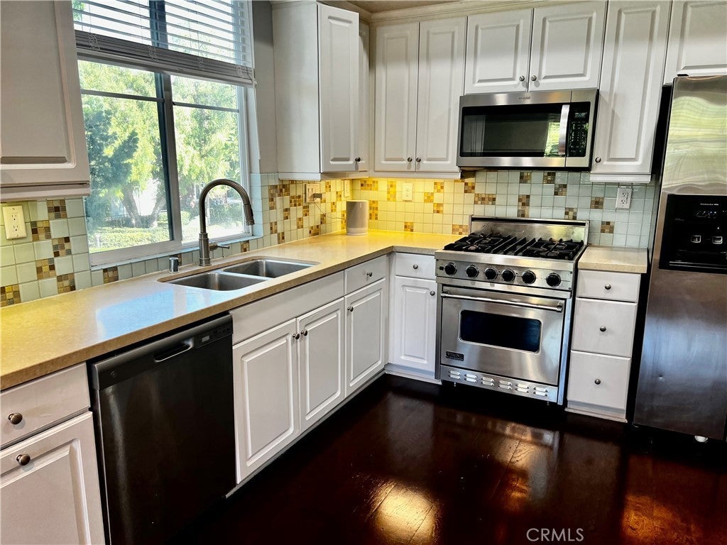 Bright and beautifully updated end-unit three-story townhome located in the desirable Tustin Fields I community. This spacious home features three bedrooms, three and a half bathrooms, and a versatile downstairs office with a powder room — perfect for remote work or guests. The main living level offers an open-concept layout with a welcoming family room featuring wood flooring and a cozy fireplace, a comfortable dining area, and a modern kitchen with quartz countertops and premium appliances including a Viking range, stainless steel refrigerator, microwave, and dishwasher. Large windows fill the home with natural light and showcase views of the adjacent park and open space. Upstairs, each bedroom includes its own private bathroom and closet. The home has been freshly painted throughout, includes brand-new carpet, and features new upgraded window coverings for a clean, contemporary look. A washer and dryer are also included for added convenience. The lower level provides direct access to the attached two-car garage. As an end unit, this home enjoys added privacy, extra windows, and an open, airy atmosphere. Residents of Tustin Fields enjoy community amenities including a pool, spa, clubhouse, BBQ areas, and playgrounds — all within the award-winning Irvine Unified School District. Ideally located near The District, John Wayne Airport, parks, and major freeways, this home offers modern comfort, convenience, and a prime Tustin location.