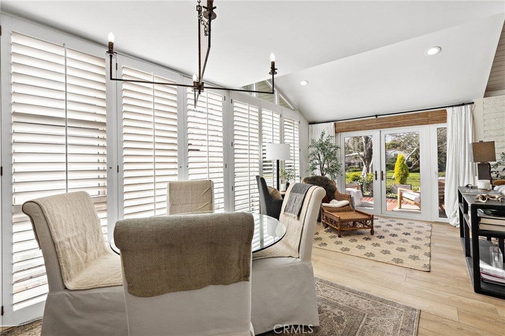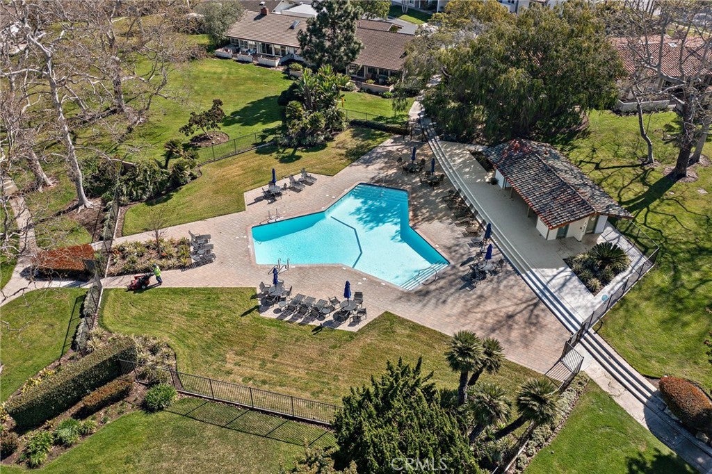Don't miss out on this expanded end unit Angelita model. This lovely single level home has two bedrooms, two baths plus an office or crafts room. You will love the prime Bluffs location. Enjoy the afternoon sun and park like setting from your spacious back patio. Vaulted wood beamed ceilings compliment the floor plan. Updated throughout, spacious master suite with a walk-in shower, bench seating and frameless shower enclosure that looks onto a private atrium. The kitchen has been remodeled with quartz countertops, tiled back splash and current cabinets and appliances. Light wood plank vinyl flooring is water and scratch resistant. Other upgrades include a complete above ground re-plumb, air conditioning, forced air heating and the interior has been freshly painted. The garage walls and ceiling are finished and freshly painted with canned lighting and epoxy flooring. Just steps to one of the two full time heated Community pools.