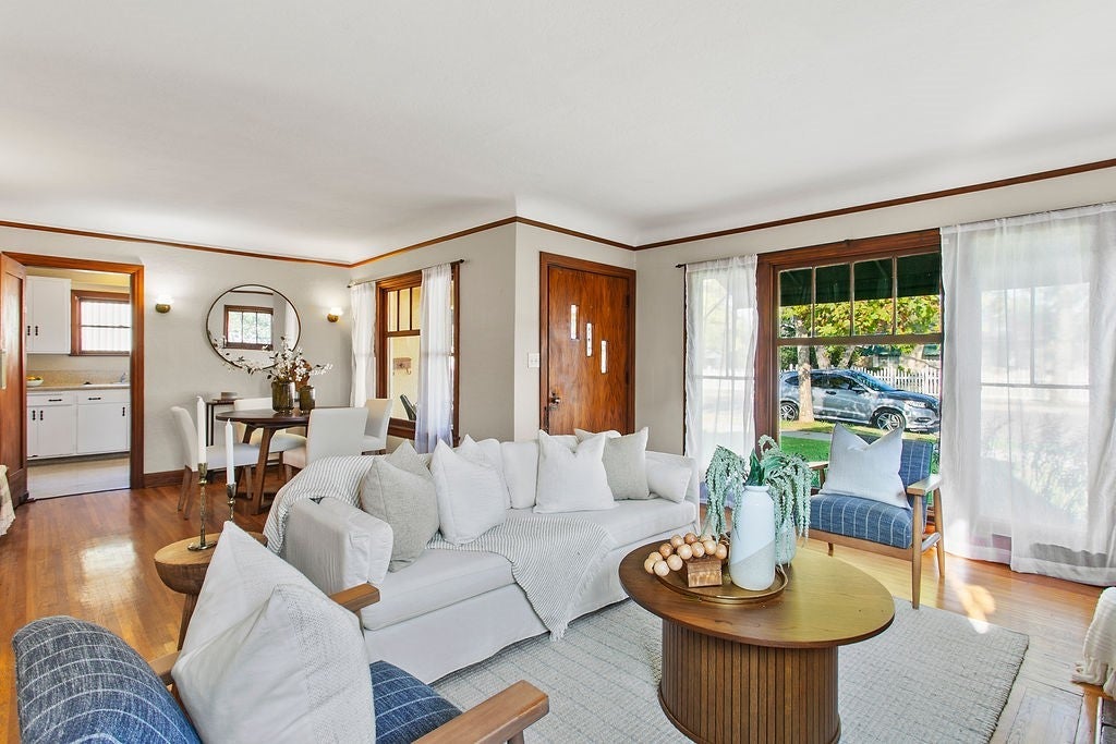 A century of character and craftsmanship come alive in The Fred and Ina Sweeney House, a beautifully-preserved Spanish Colonial Revival gem nestled in Anaheim’s beloved Colony Historic District. Recognized for its architectural significance, the home was awarded a coveted Mills Act contract - giving its owners substantially-reduced property taxes, and this contract and cost savings transfers to its next owners! From its signature Spanish tile roof and twin-gabled façade to the protected entry porch, every detail invites you to slow down and savor a bygone era. Step inside and you’ll find coved ceilings, original millwork, glass door knobs, and original wood floors—authentic 1920s design at its best. The living room is anchored by a wood-burning fireplace and flows into a dining area and through a double-swinging door to the vintage kitchen which features a cozy breakfast nook flooded with morning light. Outside, a generous two-car garage with alley access is complemented by an additional parking spot. But wait, there’s more! There’s also a studio guest house adjacent to the garage, with 3/4 bath, kitchenette, and French doors opening to a private patio—ideal for guests, a creative workspace, or supplemental income. All of this sits within walking distance of the Anaheim Packing House, Center Street Promenade, and just 1.3 miles from Disneyland.