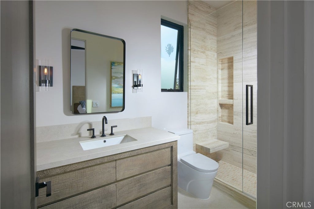 Perched on a prized corner in Irvine Terrace, this Corona del Mar sanctuary spans approx. 4,467 square feet and embodies the art of single-level coastal living. Light, proportion, and purposeful design come together to create a home that moves seamlessly from its refined interiors to the serene outdoor retreat. Serving as the heart of the home, the contemporary chef’s kitchen showcases Thermador appliances, custom cabinetry, and a stone waterfall island illuminated by designer pendants—an inviting setting for both everyday dining and larger gatherings. Glass pocket doors in the dining area, kitchen, primary suite, and media room dissolve boundaries between inside and out, connecting the residence to its lush, wraparound backyard. Expansive windows with custom automatic shades ensure natural light fills every corner. Outdoors, a covered patio with flush-mounted electric ceiling heaters, a Viking kitchenette, and a saltwater pool and spa powered by a Hayward jet system create a backdrop ideal for relaxation or lively entertaining. Anchored by a generous walk-in closet, sleek electric fireplace, dual vanities, a new oversized steam shower with multiple showerheads, and a high-end soaking tub, the primary suite delivers a true sense of serenity. Three additional en-suite bedrooms, each appointed with walk-in closets and newly updated showers, offer comfort and privacy for family or guests. Additional amenities include a glass-enclosed office with barn-style doors, a fully equipped laundry room positioned before the three-car garage, a striking glass wine wall, and comprehensive home automation. Minutes from Balboa Island, CDM Village, Fashion Island, premier golf courses, pristine beaches, upscale dining, and world-class resorts, this residence delivers an exceptional blend of luxury, convenience, and coastal sophistication.
