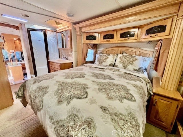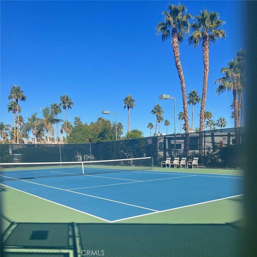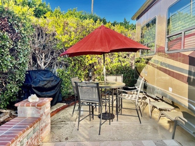 Welcome to resort living at Outdoor Resort Palm Springs (ORPS.COM) in this well kept 1 bedroom RV complete with patio and golf cart. The living area is includes a kitchen, dining area, living area with sofa bed, & desk. Step up to the master bedroom with numerous built in cabinetry, bathroom and shower area. Lots of windows and light plus a full size fridge and A/C. The expansive patio is adorned with a table & chairs, couch, umbrellas and barbeque creating the perfect setting for relaxation and entertainment. Positioned conveniently near the entrance for easy access. Outdoor Resorts Palm Springs is a Five Star RV Resort Community combining luxury with affordability. It is a guard gated resort that sits on 137 beautifully landscaped acres with 27 holes of executive golf, 10 tennis courts, 13 pickleball courts, 8 swimming pools, a fully equipped fitness center, espresso bar, sports bar, beauty salon/barber shop, full-service restaurant, convenience store, 2 club houses, activities, special events and so much more. Downtown Palm Springs is only 5 miles away, close to Palm Desert, Indian Canyons and there is a casino a mile away. Property gets great rents. Agent is owner.