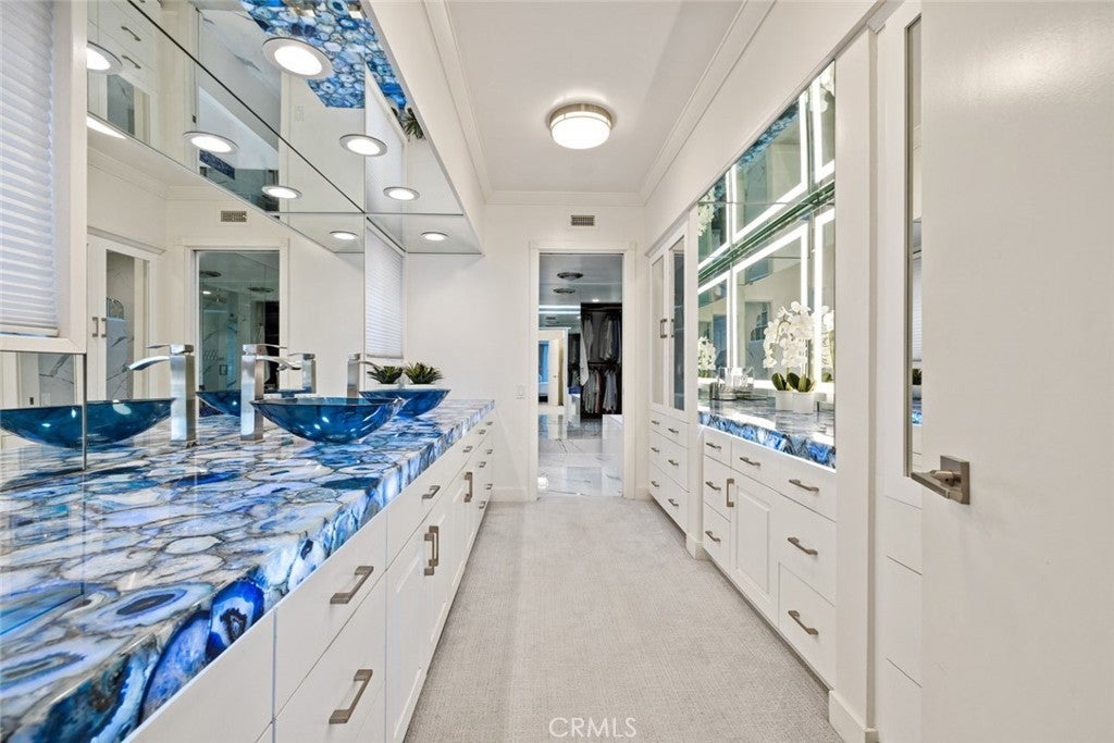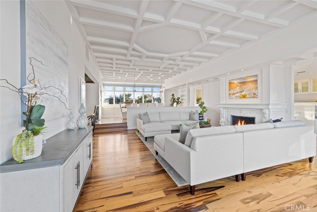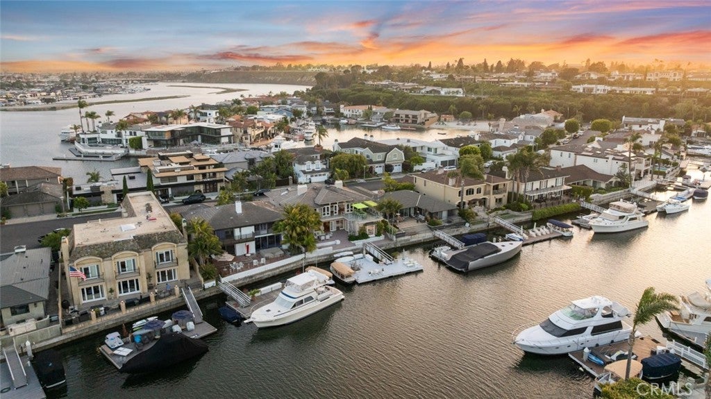 Welcome to 218 Evening Star Lane, an exceptional bay front retreat nestled in the heart of Newport Beach’s prestigious Dover Shores. Positioned on a generous lot with 60 feet of prime bay frontage and a private dock, this stunning resort-style residence captures the essence of California coastal living. Designed for both relaxation and grand entertaining, the home spans approximately 4,500 square feet and offers 5 bedrooms, 3.5 bathrooms, and a rare four-car garage. Inside, expansive water views take center stage, especially from the upper-level great room—featuring multiple fireplaces, a formal dining area that easily seats twelve, and a climate-controlled 500-bottle wine closet. The chef’s kitchen is a true showpiece, boasting Italian marble countertops, professional-grade Viking and Sub-Zero appliances, and a cozy built-in breakfast nook. Also upstairs, the luxurious primary suite opens to a large private balcony with spa and panoramic bay views. The recently remodeled ensuite bath showcases backlit exotic stone countertops and spa-inspired finishes. Enjoy the seamless indoor-outdoor flow with multiple bayside patios, an expansive upper deck, and direct access to the private dock—perfect for boating or simply soaking in the scenery. Recent upgrades include new wide-plank flooring, fresh interior and exterior paint, a custom spiral staircase, and epoxy-coated garage floors. Set at the end of a peaceful cul-de-sac, the home also offers exclusive access to three private beaches and proximity to the Newport Aquatic Center, all part of the Dover Shores lifestyle. This residence is a rare opportunity to own a front-row seat to Newport’s iconic waterfront.