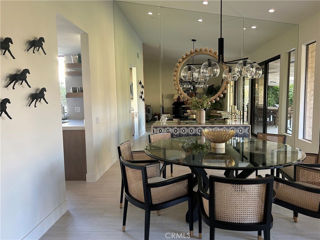 Experience an idyllic desert retreat in the prestigious enclave of Indian Wells. This exquisite, privately gated courtyard entrance leads to a beautifully appointed, fully furnished Garden floor plan—a highly sought-after 3-bedroom, 3-bath residence. Upon entering, you are greeted by a spacious living room where a striking floor-to-ceiling marble fireplace serves as the centerpiece, complemented by a wet bar with wine cooler—ideal for entertaining guests. Distinctive custom paint, soaring ceilings, and luxurious finishes grace every room of the home, showcasing the finest attention to detail. A chef’s dream, the gourmet kitchen has been thoughtfully updated with quartz countertops, stainless steel appliances, and an adjoining custom-built desk area and breakfast nook, creating the perfect space for culinary endeavors. The opulent master suite offers dual vanities, a soaking tub and shower, and a generous walk-in closet. Both the second and third guest rooms are elegantly appointed with en-suite bathrooms, with the third guest room currently configured as a den or office. Each room opens to the private patio, where one can unwind while enjoying the serene green space, lush desert landscaping, and distant views of Mount Eisenhower. Step outside to an expanded patio, offering an inviting retreat with captivating vistas, while the community pool lies just steps away. A 2-car garage plus golf cart space completes this remarkable property. Offered furnished per inventory, this home embodies the best of desert living. Pool less than 50 yards away. As part of the renowned Desert Horizons Country Club, you can acquire a temporary membership and have access to an 18-hole private golf course, fine dining, newly constructed tennis and pickleball courts, and a state-of-the-art fitness center—making this the ultimate desert lifestyle experience.