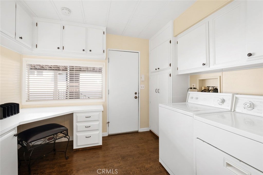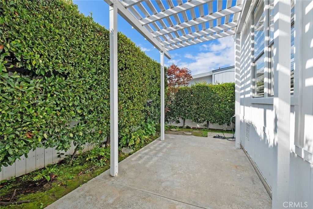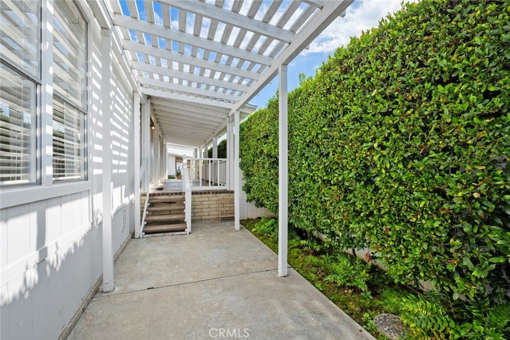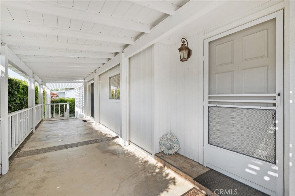 Discover exceptional active-senior living at The Groves—Irvine's most sought-after resident-owned 55+ community. This secure, 74-acre guard-gated enclave with 24/7 staffed entry delivers exceptional active-senior living with complete peace of mind and no space rent. The purchase includes both the home and your proportional share of the land through the community's cooperative structure. Situated on a quiet cul-de-sac street, this beautifully maintained home features a bright, open floor plan with a fresh, light interior color palette, high ceilings, and abundant windows, complemented by hardwood flooring throughout. The spacious living and dining area is enhanced by a custom built-in buffet display cabinet with dimmable accent lighting and generous storage. The updated, open-concept kitchen overlooks the family room, which opens to a large enclosed, covered porch framed by lush greenery,that provides privacy and seamless indoor/outdoor living. The kitchen features recessed lighting, butcher-block–style countertops, white cabinetry with pull-out shelves, and stainless steel appliances, including a side-by-side refrigerator and Bosch 5-burner gas range. The primary bedroom includes expansive triple-door, floor-to-ceiling mirrored wardrobe closets. The en-suite bath offers a separate shower and tub, additional linen storage, and a granite-topped vanity. The second bedroom provides direct access to the guest bathroom, which flows into the spacious laundry room with built-in storage cabinets and a convenient office/workstation area. Washer and dryer are included. Additional features include a newer roof (2021), adjacent tandem covered carport with an oversized locking storage unit, and central air conditioning and heating. The Groves offers a wealth of amenities, including a heated pool, spa, fitness center, sauna, tennis, pickleball, basketball courts, a putting green, lawn bowling, and community BBQ areas. The clubhouse features banquet facilities, card and game rooms, and an on-site hair salon. Creative residents enjoy the ceramic studio, woodshop, and garden area. Additional conveniences include RV parking and a camping club. With on-site management and a dedicated activities coordinator, the community is always active with events and clubs. Low monthly maintenance fees and discounted Cox TV/Internet enhance the value and convenience of living here.