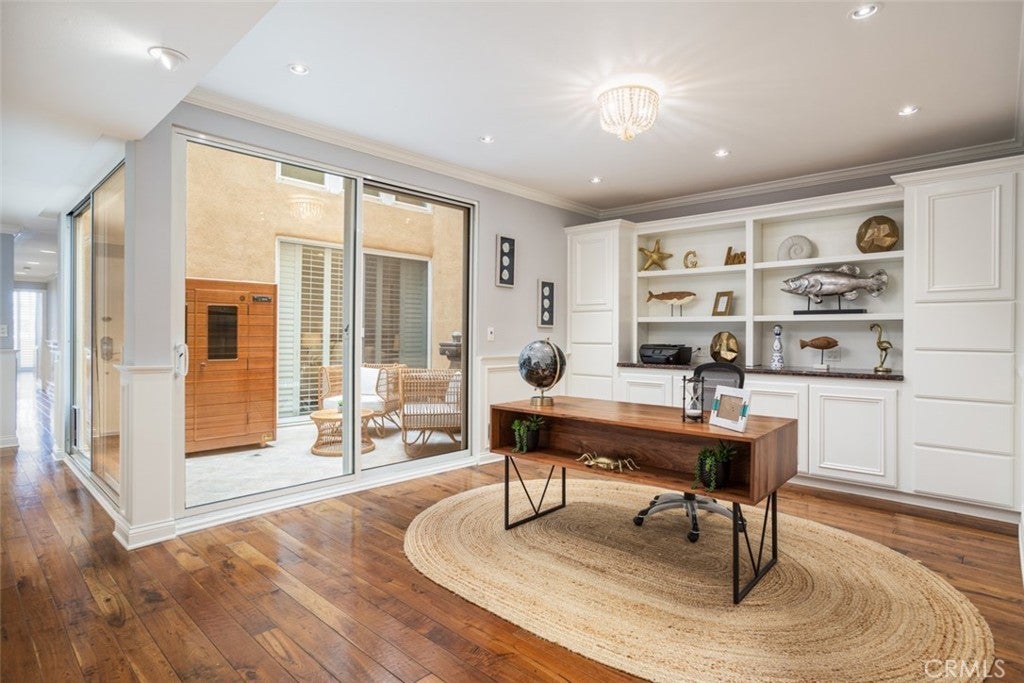 WATERFRONT PROPERTY. Experience the very best of “Lido Life” at this beautifully curated, bay-view, fully furnished residence. Front-row and picturesque bayfront, this first-floor property strikes the perfect balance of luxury and leisure. Located in a private, secure-access building with a gated underground parking garage. From the moment you enter, you're welcomed by rich hardwood flooring, crisp white millwork, and spectacular views. Expansive sliding glass doors line the great room, opening to your private bayfront patio perfect for seamless indoor-outdoor living. The open-concept kitchen is both functional and inviting, featuring bar seating and designer finishes. Just off the kitchen, a generous walk-in pantry with full-size washer/dryer, sink, and pocket door keeps everything tucked away, yet easily accessible. The layout includes two ensuite bedrooms plus an executive office and a private courtyard patio complete with an infrared sauna. The Primary Suite is a peaceful retreat with its own patio overlooking Cannery Village and the Rhine Channel. The ensuite bath offers a spa-like experience with dual vanities, timeless stonework, a large walk-in shower, and an oversized walk-in closet with built-ins. All of this is located within the highly sought-after 621 Lido building known for its private boat slips, secure parking, and unbeatable access to Lido Marina Village, Cannery Village, and everything the Newport Peninsula has to offer. Boat dock may be available with rental for an additional fee. If you’ve been dreaming of a turnkey Newport Beach property that blends style, comfort, and waterfront views welcome to 621 Lido Park Drive, Unit #B1.