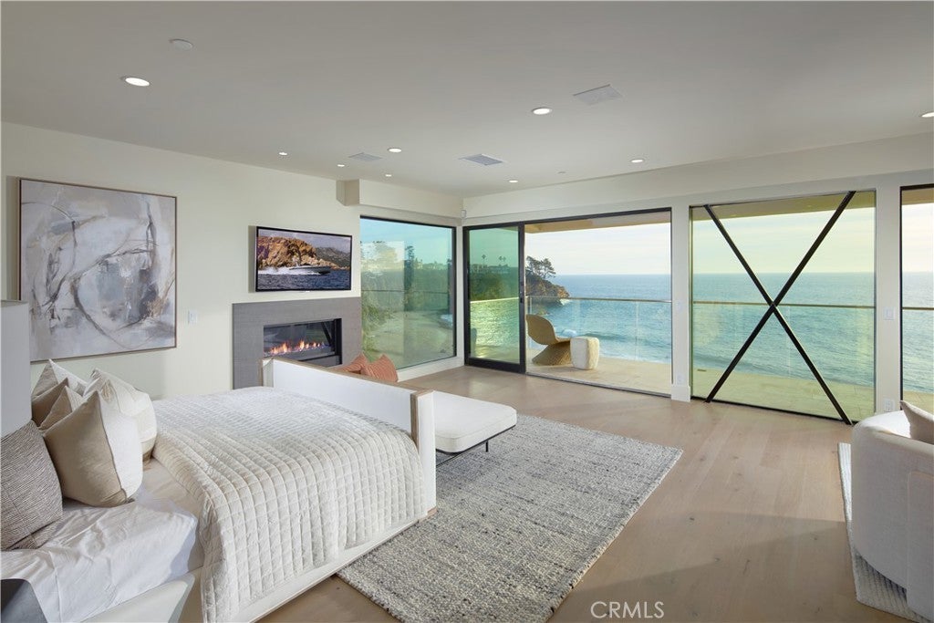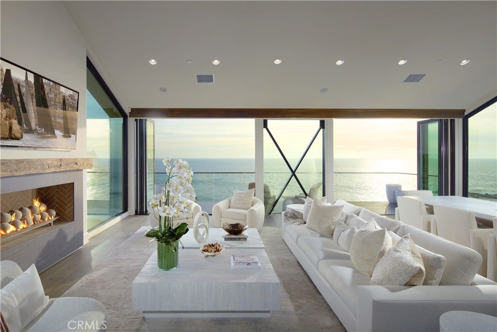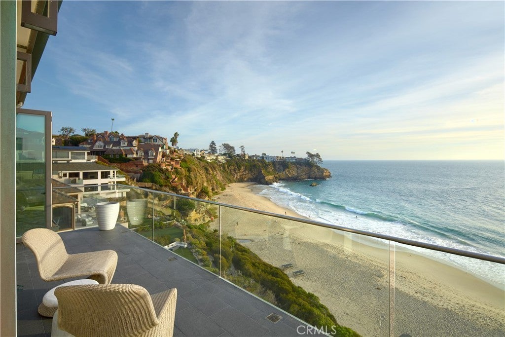 From its stunning perch overlooking the ocean, the beach at Mussel Cove, breaking waves, rocky cliffs, Catalina Island and spectacular sunsets, this contemporary Laguna Beach masterpiece redefines luxurious oceanfront style and living. Newly remodeled to the highest standards inside and outdoors, the custom estate is located at the end of a cul-de-sac in guard-gated Three Arch Bay, one of Southern California’s most sought-after addresses. The sound of the surf creates a natural playlist for an incomparable lifestyle, lending excitement to entertaining and calm to relaxation. Virtually every detail of the home is new, including its roof and exterior walls clad in natural stone tile. Approximately 5,072 square feet, the residence offers direct beach access and reveals itself to be exceptionally open, bright and enviably private. A loft-style foyer with sitting area opens via a staircase to living areas below. Enjoy vaulted and beamed ceilings, skylights, and floor-to-ceiling windows that frame ocean and beach views. Seamless in design, living and dining rooms open to an ocean-view balcony via bifold glass doors, a linear fireplace adds visual flair, and the family room features an elevator with access to lower levels. Top-tier finishes and fixtures were incorporated into the new remodel at every opportunity, including wide-plank wood flooring, high-end lighting and glass stair rails. In the kitchen, a peninsula and an island accommodate meal prep and casual dining, and a glass-enclosed wine wall, custom white Shaker cabinetry, full backsplash, built-in Sub-Zero refrigerator, two Bosch drawer microwaves, a double Wolf range, and a prep kitchen with walk-in pantry are featured. The multi-level floorplan includes four bedrooms and four full and two half baths. Two ocean-view primary suites are featured, one on each of the lower levels. One includes a versatile bonus room, and both present covered balconies with magnificent ocean and beach views, fireplaces, lavish en suite bathrooms, and custom walk-in closets. On the lowest floor, a spacious secondary bedroom hosts built-in bunkbeds. Full-width balconies at three levels erase the lines between indoor living and the ocean, and stairs descend to an intimate backyard on a homesite of nearly 9,040 square feet. Located in South Laguna, Three Arch Bay offers lighted tennis and pickleball courts, a playground, and easy access to Monarch Beach Golf Links, The Ritz-Carlton Resort, Dana Point and Laguna’s Main Beach.