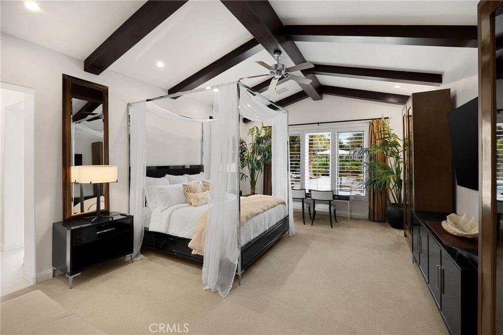 Beamed Ceilings, Wet Bar, Breakfast Bar, Ceiling Fan(s), Separate/Formal Dining Room, Eat-in Kitchen, High Ceilings, Open Floorplan, Recessed Lighting, Tile Counters, Bar, Wired for Sound, All Bedrooms Down, Bedroom on Main Level, Entrance Foyer, Main Level Primary, Primary Suite, Furnished, Smart Home, Wired for Data, Wood Product Walls