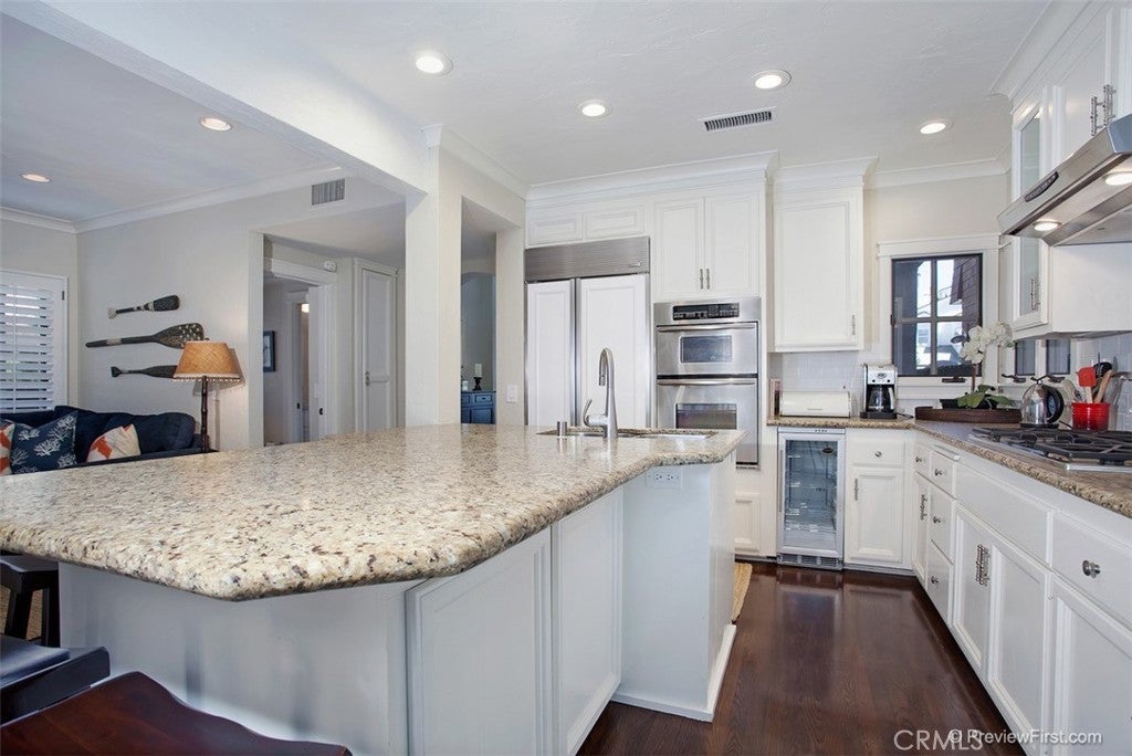 Beautifully furnished monthly executive rental in the Flower streets of Corona del Mar. A desired corner location, just two blocks from restaurants and shopping, one block from Begonia Park and a short distance to the spectacular beaches of CdM. This home boasts a traditional style floor plan and feel. Gorgeous dark wood floors throughout the home, chef's kitchen with granite countertops and an oversized center island and stainless steel appliances which open to a charming family room with fireplace and leads to a private patio. Living room with fireplace has French doors opening to front patio and a raised dining room. Primary suite features a lovely luxurious bath with travertine tiles and flooring, travertine shower, claw foot tub and a custom designer walk in closet. Off the third level is a roof top deck with partial ocean views. Tastefully decorated so just bring your bags and enjoy the charm of Corona del Mar. Carport and one car garage parking. Winter rental is $11,000/mo.