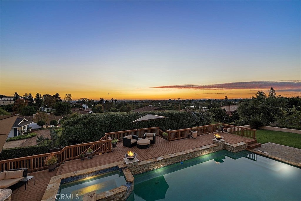 Welcome to an exceptional renovated estate at 1542 La Loma Drive in North Tustin—where luxury living, resort-style amenities, cool breezes, and serious car-collector capability come together in one extraordinary property. This move-in-ready home featuring the privacy of a dead-end street has been reimagined and offers sweeping panoramic vistas, including direct Catalina Island sunset views. Arrive in style with a motor court–style entrance leading to a six-car collector-grade garage environment featuring lift-ready bays, impressive volume, and the privacy to maintain and enjoy your vehicles on your own schedule. It’s a rare opportunity to elevate both your lifestyle and your collection. Inside, the home spans approximately 4,614 square feet of beautifully finished living space with three bedrooms plus incredible bonus rooms—including a fully equipped gym and projection room. The chef’s kitchen shines with stainless steel appliances, gorgeous granite countertops, and rich cherry wood cabinetry, opening to bright living areas framed by expansive picture windows and a view deck facing west towards the ocean—Disneyland fireworks can even be seen off the patio deck at night. Venture outside to your personal resort featuring a pool, jacuzzi, and stunning wood deck, with plenty of yard space left to play, entertain, and unwind. This property truly has it all—luxury upgrades, entertainer spaces, car-enthusiast amenities, and outdoor living done right.