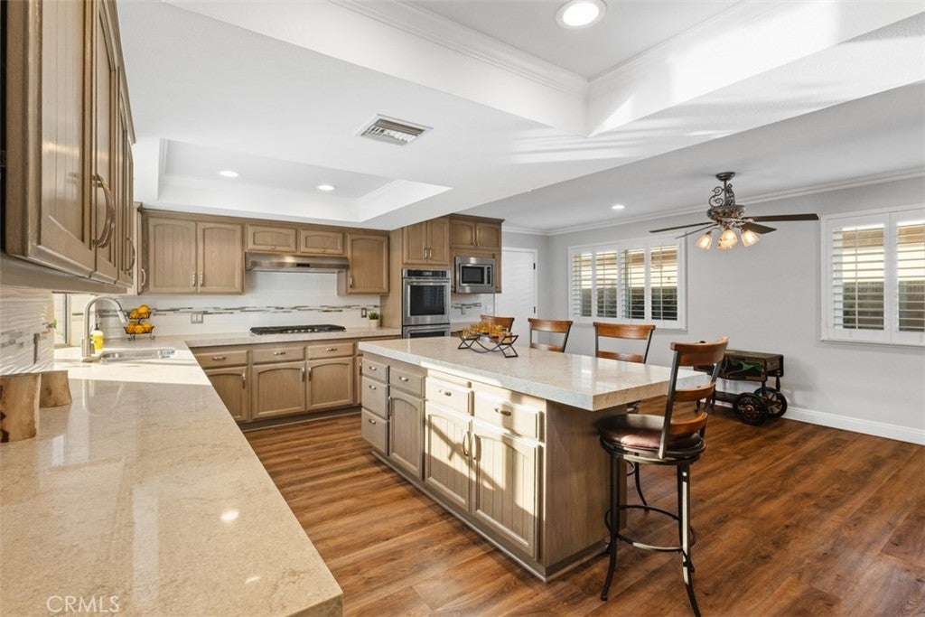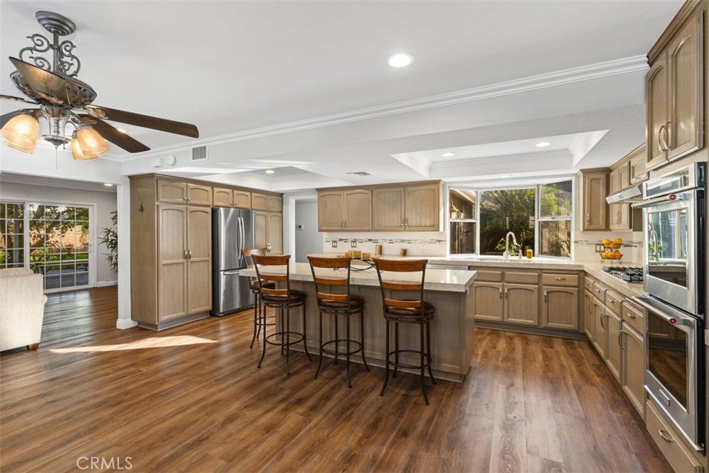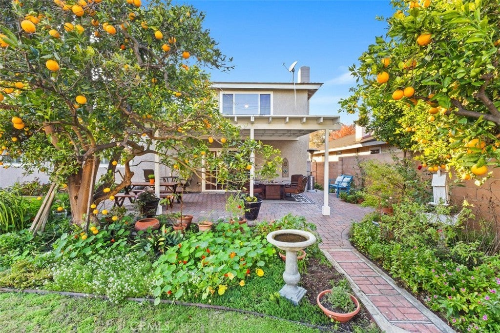 What a gem this house is, it has been loved by the same family for over 55 years. This two-story 4bd, 3ba home sits in the middle of a charming cul-de-sac near Mile Square Park. With two primary suites, one upstairs and one downstairs, this could be ideal for multi-generational living. As you enter this beautiful home, you will be immediately drawn to the kitchen. Recently remodeled, it is a baker's delight with thousands of delicious cookies made it that kitchen over the years. From the kitchen you easily flow into the family room and take in the views of the amazing backyard or just cozy up to the fireplace. Upstairs the second primary suite is spacious and has a walk-in closet. On the second floor there is also a huge open room, great for playing games or watching games. This area was originally a fifth bedroom. As you step into the backyard, welcome to Shangri-La. The fruit trees are many, including a very mature orange tree with the sweetest tasting oranges ever. Vegetable plants can be found back there too. Gorgeous flowers and shrubs adorn the surroundings on the entire backyard. Sitting under the covered stone paved patio, you can get lost in thought with a great read or just take in the natural beauty. This home really does feel like home.