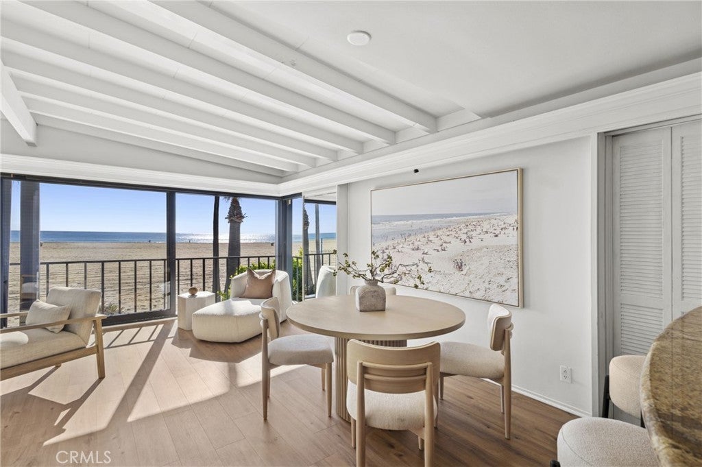An extraordinary opportunity to own an oceanfront triplex perfectly positioned along the Newport Beach boardwalk, offering panoramic coastal views and an unmatched beachside lifestyle. The property consists of three spacious residences each thoughtfully designed with comfort, functionality, and coastal living in mind. The upper front residence is filled with natural light and features a living room with dramatic skylights, wood floors, and abundant storage. The kitchen includes stainless steel appliances, granite counters, and oceanview sightlines. A second living room showcases a fireplace with a masonry wall and hearth, vaulted beamed ceilings, a Juliette balcony, and sweeping beach and ocean views. The layout includes two bedrooms, a full bath with tub and shower, a laundry room with sink, a walk-in shower, and a spacious skylit walk-in closet. An upper loft with an office area leads to a rooftop deck ideal for enjoying coastal breezes and sunset vistas. The front lower residence sits directly along the boardwalk and includes a generous patio overlooking the sand. The living room features walls of glass capturing ocean panoramas and a fireplace with a masonry surround. The kitchen offers a breakfast bar and expansive counter space. Three bedrooms include a primary suite with an adjoining bath, providing excellent flexibility for guests or long-term use. The back residence offers a private retreat with a Dutch door entry, a wetsuit rack, a cozy dinette, and a living room with a fireplace. The bedroom includes an attached bath, and a balcony creates a peaceful outdoor escape. A central courtyard connects the homes, and an oversized three-car garage with a communal laundry room and additional bath completes this exceptional offering. Whether as a legacy property, income-producing asset, or multi-generational retreat, this oceanfront triplex combines location, lifestyle, and iconic boardwalk frontage. Positioned steps from Marine Park and minutes from dining, recreation, and Newport’s coastal amenities, it presents a rare opportunity to own a versatile, prominently located property, an offering seldom available on the Newport shoreline.