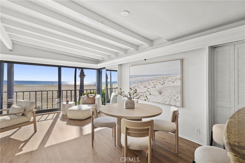 An extraordinary opportunity to own an oceanfront triplex perfectly positioned along the Newport Beach boardwalk, offering panoramic coastal views and an unmatched beachside lifestyle. The property consists of three spacious residences each thoughtfully designed with comfort, functionality, and coastal living in mind. The upper front residence is filled with natural light and features a living room with dramatic skylights, wood floors, and abundant storage. The kitchen includes stainless steel appliances, granite counters, and oceanview sightlines. A second living room showcases a fireplace with a masonry wall and hearth, vaulted beamed ceilings, a Juliette balcony, and sweeping beach and ocean views. The layout includes two bedrooms, a full bath with tub and shower, a laundry room with sink, a walk-in shower, and a spacious skylit walk-in closet. An upper loft with an office area leads to a rooftop deck ideal for enjoying coastal breezes and sunset vistas. The front lower residence sits directly along the boardwalk and includes a generous patio overlooking the sand. The living room features walls of glass capturing ocean panoramas and a fireplace with a masonry surround. The kitchen offers a breakfast bar and expansive counter space. Three bedrooms include a primary suite with an adjoining bath, providing excellent flexibility for guests or long-term use. The back residence offers a private retreat with a Dutch door entry, a wetsuit rack, a cozy dinette, and a living room with a fireplace. The bedroom includes an attached bath, and a balcony creates a peaceful outdoor escape. A central courtyard connects the homes, and an oversized three-car garage with a communal laundry room and additional bath completes this exceptional offering. Whether as a legacy property, income-producing asset, or multi-generational retreat, this oceanfront triplex combines location, lifestyle, and iconic boardwalk frontage. Positioned steps from Marine Park and minutes from dining, recreation, and Newport’s coastal amenities, it presents a rare opportunity to own a versatile, prominently located property, an offering seldom available on the Newport shoreline.