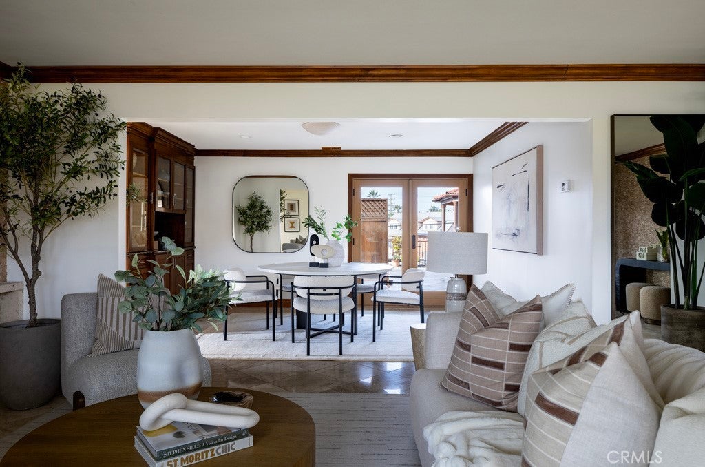 Refined coastal living awaits at 401 Holmwood Dr., a single-level residence set on a generous corner lot. An open-concept floor plan seamlessly unites the living and dining areas, anchored by the stone fireplace creating a sense of sophisticated comfort. Thoughtfully designed, the home offers an expansive yet welcoming environment ideal for both intimate gatherings and elegant entertaining. The spacious kitchen and dining nook are filled with natural light thanks to the corner orientation, and are conveniently complemented by a nearby laundry room and powder bath. Two well-appointed bedrooms—each with its own bathroom—provide privacy and ease. The primary suite serves as a luxurious retreat, offering direct access to the exceptional rear patio. This private outdoor haven is crafted for relaxation and hosting alike, featuring a covered gazebo, the soothing ambiance of a tranquil fountain, and a built-in fire pit perfect for evenings under the stars. Ideally located just moments from Newport’s pristine beaches, world-class dining and amenities along 17th Street and Harbor Blvd., and blocks from Hoag Hospital and surrounding medical facilities, this residence is a rare and remarkable find.
