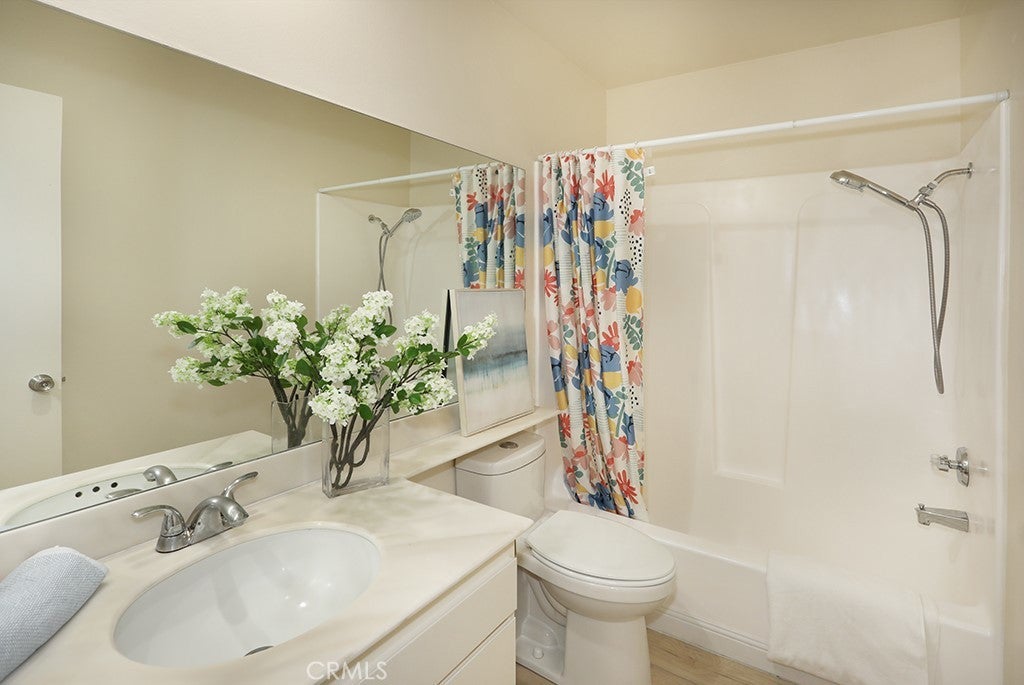 Desired Condo in a prime Westminster location! This one level unit offers 1,182 sqft living space, 2 bedrooms and 2 baths with modern finishes throughout. The renovated kitchen features quartz countertops, wood cabinetry and relatively new stainless steel dishwasher. Spacious living room and dining area with upgraded laminated wood flooring throughout the home. First floor has generously sized bedrooms including large closets and remodeled bathrooms. New gas heating unit and recently purchased water heater. Property is in excellent condition and in a gated complex. Additional highlights include in-unit laundry, heat, private patio great for relaxing outdoors, and an attached 2-car garage plus parking in the community. Community pool with ample guest partking. Located in a well-maintained community around shopping and restaurants. Monthly HOA is 395/month. Perfect for first time home buyers. Conveniently located near parks, schools, shopping, dining, and major freeways. A move-in-ready home in a prime location — don’t miss this opportunity!