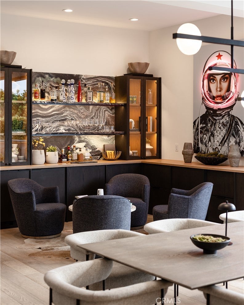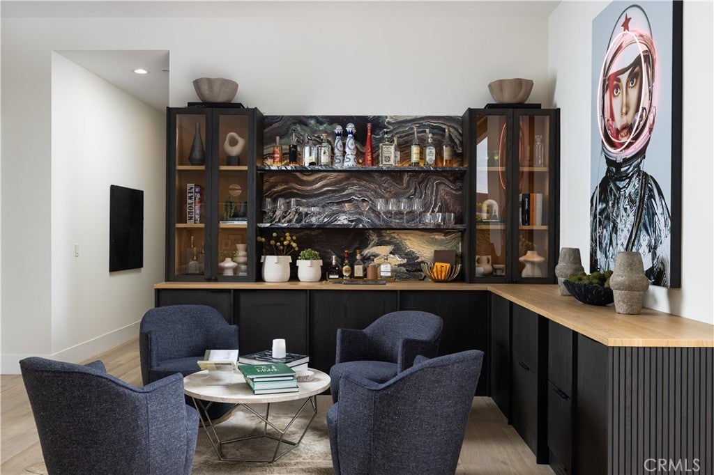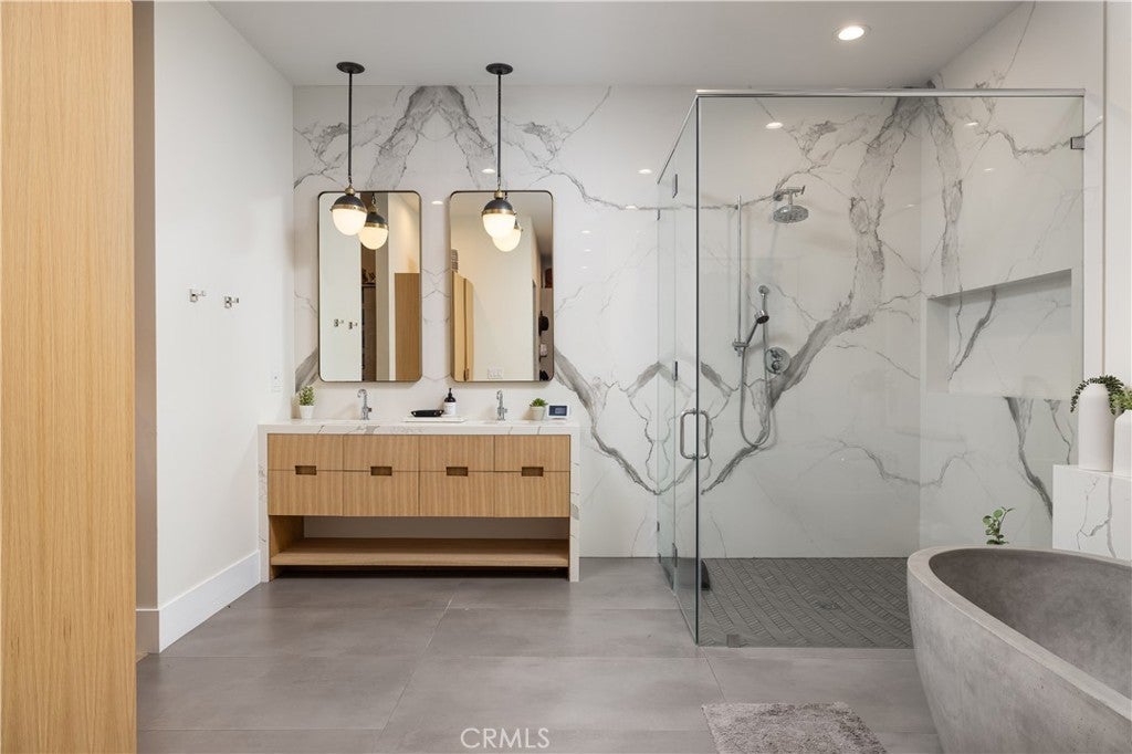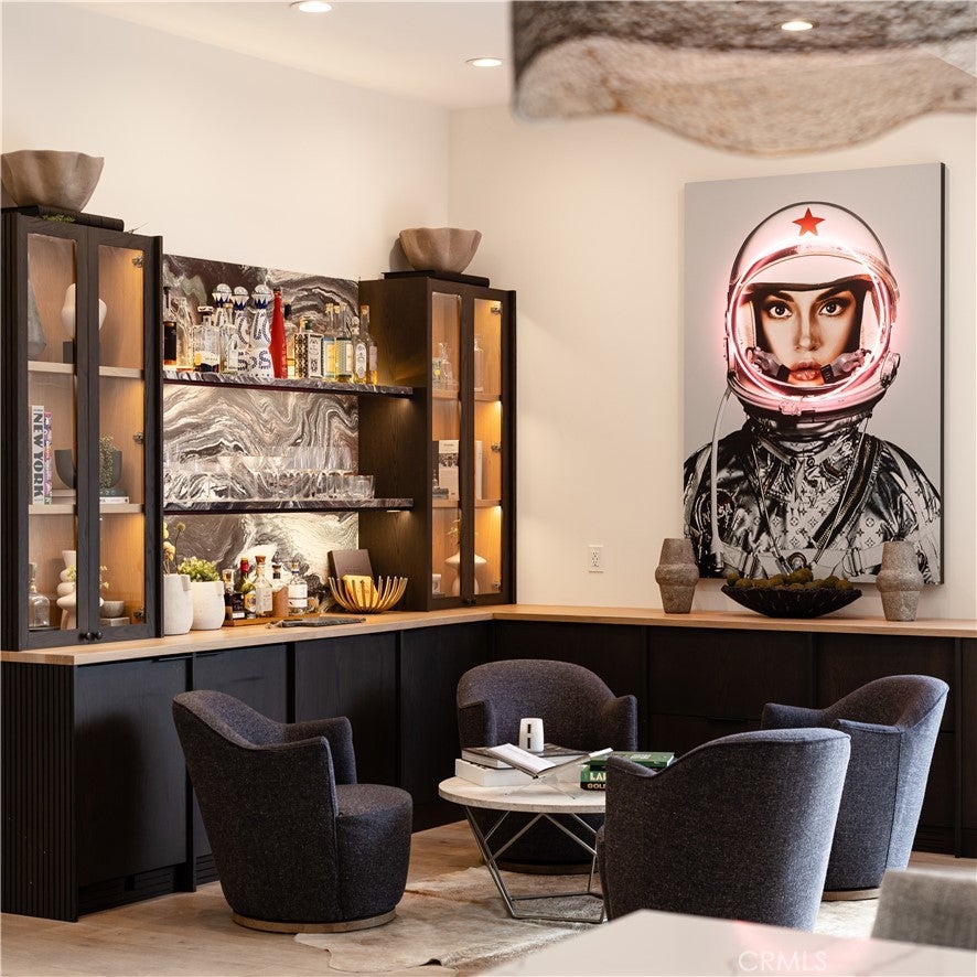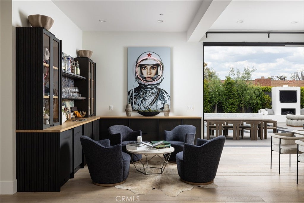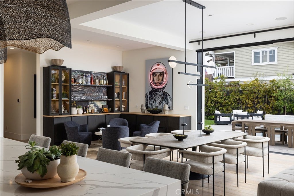 SHORT-TERM SUMMER RENTAL. Sleek modern design meets coastal ease in this approximately 3,713 square foot, single-level showpiece tucked on one of Baycrest’s most coveted streets. Step inside to a sun-drenched interior where skylights, 11-foot ceilings, and wide-plank white oak floors create an airy, open feel throughout. The great room is anchored by a stunning electric fireplace wall and flows seamlessly into a magazine-worthy kitchen outfitted with rift-cut oak cabinetry, a neolith-topped waterfall island, and high-end appliances including Dacor and a gallery beverage fridge. Just off the living room, a custom built-in bar with beverage drawers and a wine fridge enhances the home’s entertainment appeal. Oversized sliding doors disappear to reveal a true backyard retreat complete with pool, spa, water features, outdoor fireplace, built-in BBQ bar, and multiple dining and lounging zones perfect for entertaining or quiet evenings at home. This thoughtfully designed home features four en-suite bedrooms, including a luxurious primary suite with a spa-like bath boasting book-matched porcelain slab walls, dual vanities, frameless glass shower, and separate soaking tub. Further along is a stylish powder room and versatile bonus room with sliding barn doors and built-ins ideal for an office, media room, or playroom. Rounding out the property is an attached three-car garage, lush landscaping, and a quiet, tree-lined location just minutes from top-rated schools, the Back Bay trails, beaches, and Newport’s best dining and shopping.