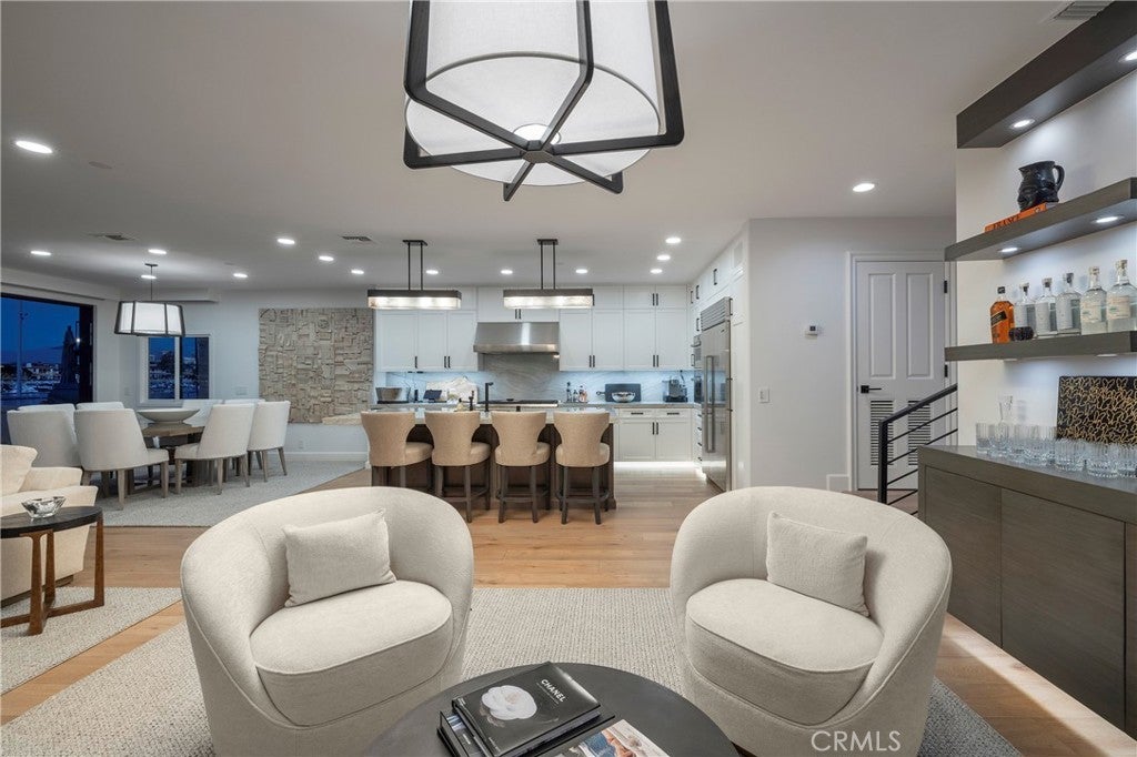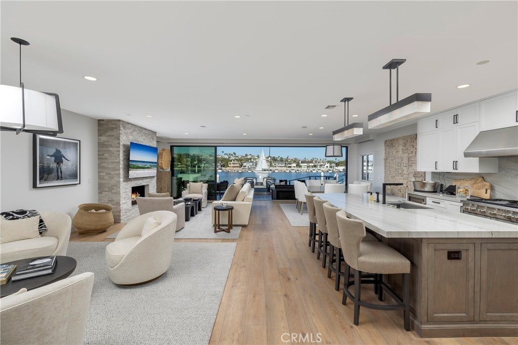 704 Via Lido Nord presents an extraordinary bayfront opportunity on the highly coveted eastern tip of Lido Isle—newly enhanced to elevate its already exceptional appeal. Showcasing spectacular 180-degree views of Newport Harbor, this coastal contemporary residence enjoys 35 feet of premium frontage along the renowned Nord channel, offering an ever-changing panorama of sailing activity, sparkling evening lights, and distant mountain silhouettes. Upon arrival, the home’s refined yet relaxed coastal style and breathtaking sightlines immediately impress. Recent improvements thoughtfully elevate the property while preserving its timeless design, including the installation of a Fleetwood window system, automated shades, and various upgraded finishes—creating a residence that feels beautifully renewed and impeccably maintained. Nearly 3,200 square feet of sophisticated living space is defined by an open, flowing floor plan, high ceilings, designer details, elegant stonework, and hardwood flooring. The expansive Fleetwood sliders open wide to frame unobstructed harbor views and welcome abundant natural light. The main level is designed for effortless entertaining and everyday living, featuring a spacious living room with seamless indoor-outdoor connection, a dining area positioned to capture the views, and a gourmet kitchen appointed with top-tier appliances. A desirable first-floor bedroom suite—ideal as an office or guest retreat—adds versatility. Additional highlights include an elevator, upgraded systems, and meticulous craftsmanship throughout. The waterfront patio showcases a redesigned deck and updated seaside seating, creating an inviting vantage point for year-round enjoyment. The private dock accommodates two vessels, offering exceptional access to the harbor. Upstairs, the luxurious primary suite captures sweeping views from a generous balcony and includes a fireplace, spa-inspired bath, and large walk-in closet. Two additional en-suite bedrooms complete the second level. Ideally located near Lido Marina Village’s dining and boutiques—and just steps from the Lido Isle private beach, clubhouse, and park—this residence offers premier bayfront living in one of Newport Beach’s most sought-after waterfront settings.