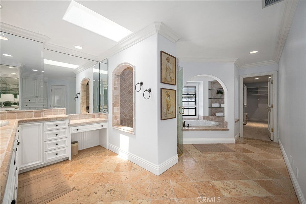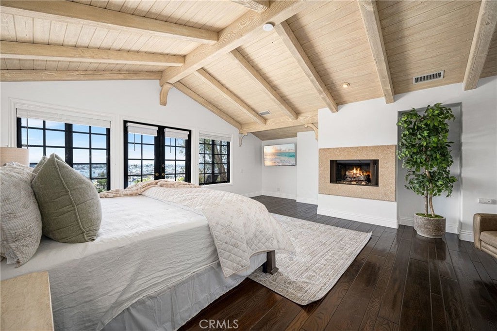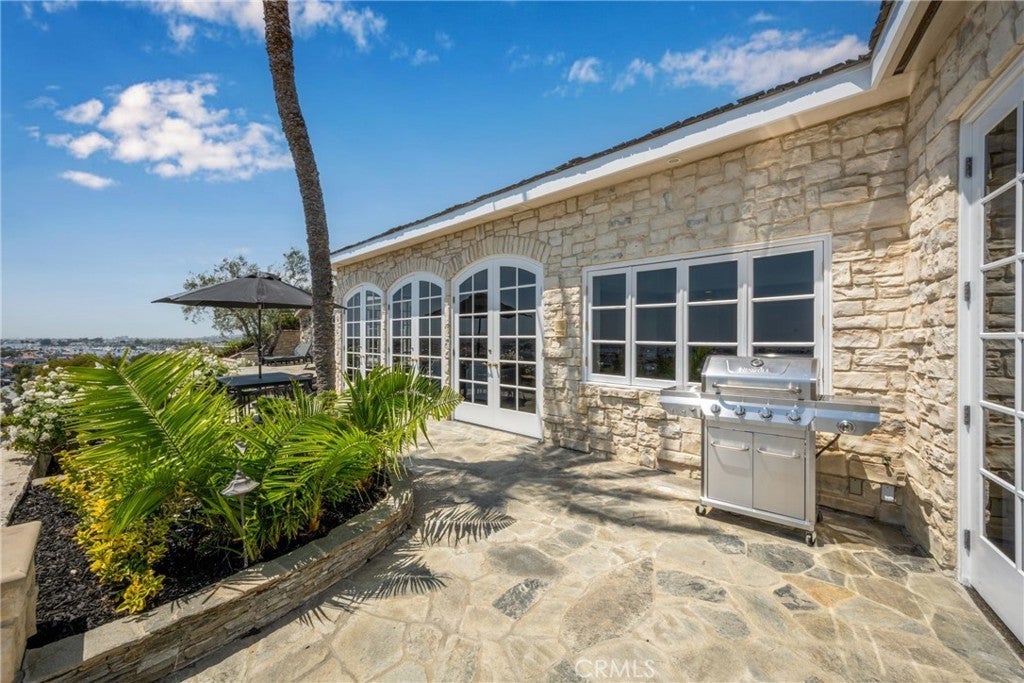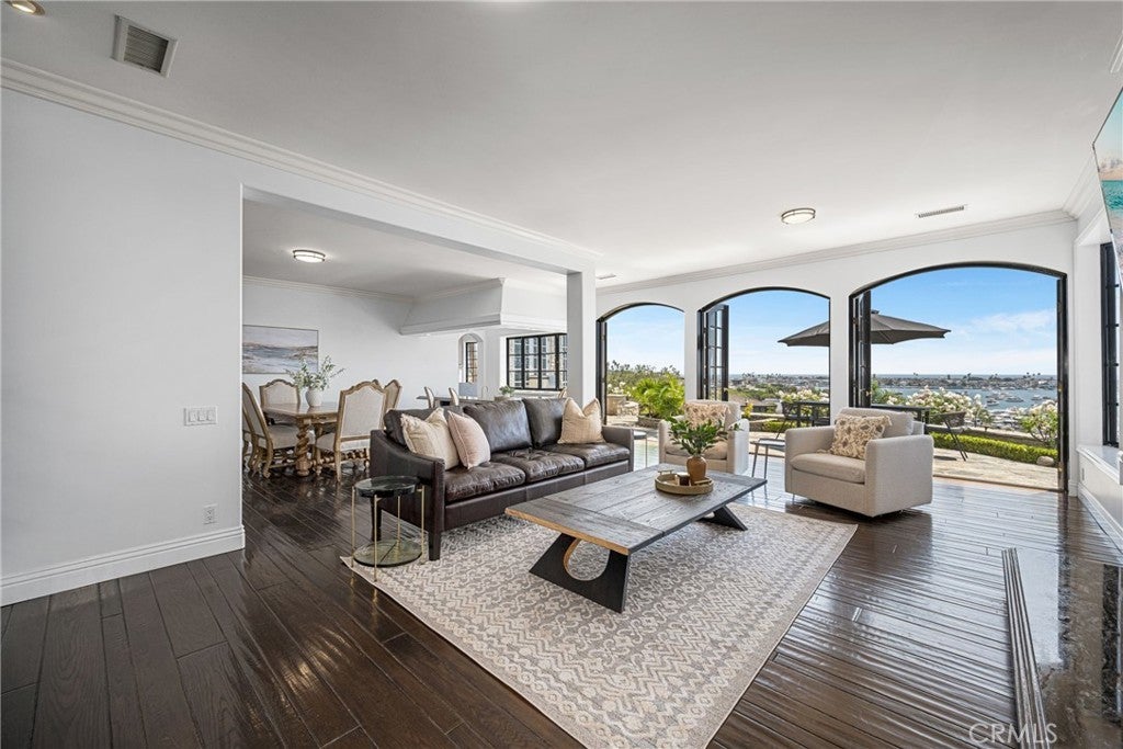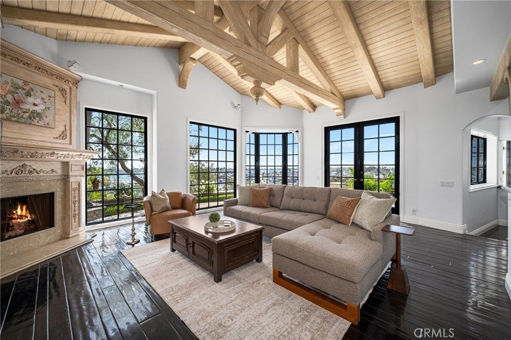 Positioned on a premier bluff-front parcel in Irvine Terrace, this fully furnished residence commands sweeping harbor, ocean, and sunset vistas; an exceptional setting where architectural scale, natural light, and coastal atmosphere converge. Expansive terraced grounds cascade toward the view, creating a series of outdoor environments tailored for refined living and effortless entertaining. A voluminous living room introduces the home with a sophisticated interplay of light and space, highlighted by a fireplace, an intimate ocean-view sitting nook, and sets of French doors that dissolve the boundary between indoors and out. The grand dining room, enhanced by a full serving bar, provides an impressive backdrop for hosting on any scale. The culinary spaces are crafted with remarkable intention: an oversized kitchen appointed with an island, breakfast bar, office nook, extensive counter surfaces, abundant custom cabinetry, premium appliances, dual convection ovens, six-burner cooktop with cast-iron griddle/grill, beamed ceilings, skylight, custom range hood, walk-in pantry, and a dedicated laundry room. The kitchen unfolds into the adjoining family room—an inviting, architecturally rich space with vaulted beamed ceilings, curated built-ins, a fireplace with mantel, and additional French doors capturing the breadth of the coastal panorama. A distinguished office/library creates an ideal retreat for study or creative work, complemented by a fireplace, bespoke built-ins, and soft daylight from a skylight. The primary suite occupies a privileged vantage point, presenting soaring beamed ceilings, a fireplace, a private retreat area, commanding coastal views, and direct outdoor access. The primary bath evokes a spa-like ambiance with a dual-sink vanity, makeup vanity, soaking tub with integrated shelving, walk-in shower, and an expansive walk-in closet fitted with custom organization. A ship-lapped lower level extends the living experience with a flexible lounge ideal for media, gaming, or relaxation. Completing the estate is an oversized three-car garage with generous storage and meticulously arranged grounds that celebrate the beauty of the bluff-top setting. A rare opportunity to experience the revered Irvine Terrace lifestyle; moments from Corona del Mar’s beaches, boutiques, dining, and acclaimed Blue Ribbon schools; framed by some of the region’s most captivating coastal views.