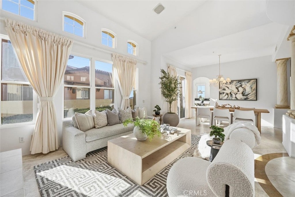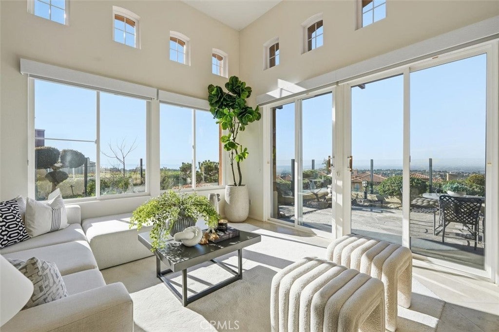 Prepare to be captivated by timeless elegance and breathtaking panoramic views at 21 Splendore Drive in Newport Coast. Perched within the exclusive gated community of Altezza in Newport Coast, this original owner expansive end-unit “D” Plan residence offers approximately 2,748 square feet of sophisticated living space, featuring 3 bedrooms, 2.5 bathrooms, and the rare luxury of a main-floor primary suite. From the private driveway, step inside to a luminous interior where soaring ceilings and oversized windows bathe the home in natural light, creating an inviting and open ambiance. The two-story living room, anchored by a classic fireplace, exudes warmth and charm, while a spacious upper-level landing enhances the sense of openness. Adjacent, the formal dining area is perfectly suited for hosting intimate dinners or lively gatherings. The heart of the home is the open-concept kitchen and family room, a functional and welcoming space with abundant counter space, timeless appliances, and sliding glass doors that lead to serene outdoor retreat. The main-floor primary suite is a private sanctuary, complete with custom closets, patio access, and an ensuite bathroom featuring a soaking tub and separate shower. Also on the main level, you'll find a powder room, a convenient laundry room, and thoughtful touches that elevate daily living. Upstairs, the home’s versatility shines. An expansive bonus room awaits your imagination—ideal as a media room, home office, gym, playroom, or even a large fourth bedroom. Two additional bedrooms, including one with an ensuite bath, offer ample flexibility and comfort for family or guests. Outdoor living is seamlessly integrated into the home’s design. Wraparound patios provide the perfect setting to savor the stunning views of the Pacific Ocean, sparkling city lights, and rolling hills. Whether you’re hosting al fresco dinners or enjoying quiet moments, this home’s elevated position ensures every outdoor space feels like a private retreat. Living in Altezza means access to resort-style amenities, including a pool, spa, tennis court, and clubhouse. The location is second to none, just minutes from world-class shopping, fine dining, pristine beaches, John Wayne Airport, and major freeways. 21 Splendore Drive isn’t just a home it’s a lifestyle, offering the perfect blend of elegance, comfort, and convenience.