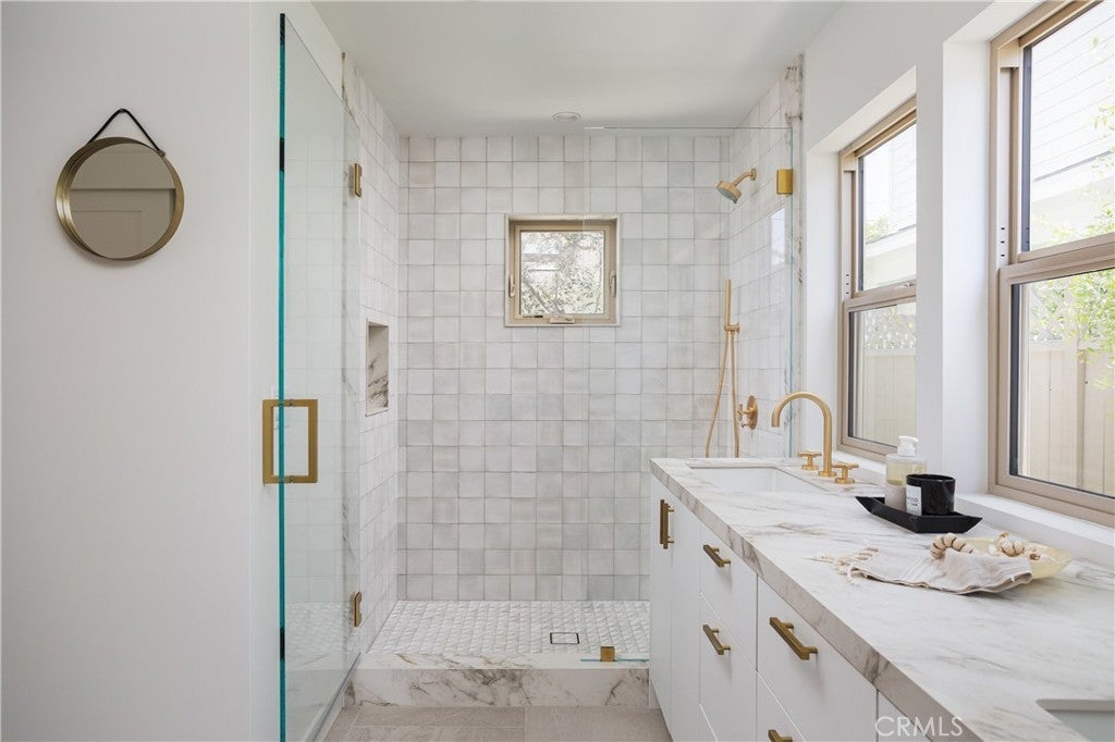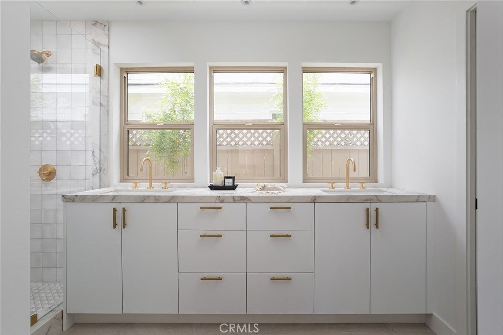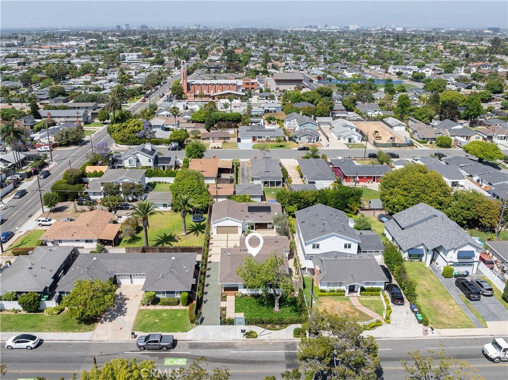 Expertly crafted by local firm Abode Design + Build, known for their thoughtful integration of architecture and interiors, this rare dual-residence property blends timeless coastal style with modern functionality in one of Eastside Costa Mesa’s most coveted neighborhoods. Set on a generously sized 8,000+ sq ft lot, the home offers two completely independent living spaces—ideal for multi-generational living, guest accommodations, or premium rental income. Set behind a gated entry with lush, magazine-worthy landscaping by Orchard Landscaping, the grounds feature extensive new hardscape, a turf block driveway for enhanced curb appeal and drainage, and multiple outdoor areas for entertaining and relaxation. The front residence, a reimagined single-level 3-bedroom, 2-bath home, spans 1,640 sq ft and has been fully remodeled and expanded to create open-concept living with high ceilings and abundant natural light. Large skylights brighten the interior throughout the day, while oversized sliding glass doors create a seamless indoor-outdoor connection. The spacious primary suite includes dual closets and a beautifully appointed bath, offering a true retreat within the home. Built-in speakers provide effortless audio throughout, complementing the all-new appliances, custom cabinetry, and curated finishes. At the rear, a brand-new 2-bedroom, 2-bath ADU (938 sq ft) offers private luxury living with its own entrance, full kitchen, solar panels, and a finished 2-car garage. Like the front unit, it features expansive sliding doors that open to an inviting patio and skylights that fill the interior with light. Built-in speakers and premium materials complete the experience in this high-end, standalone residence. This unique offering delivers flexibility, long-term value, and low-maintenance luxury just minutes from beaches, top schools, restaurants, and retail.