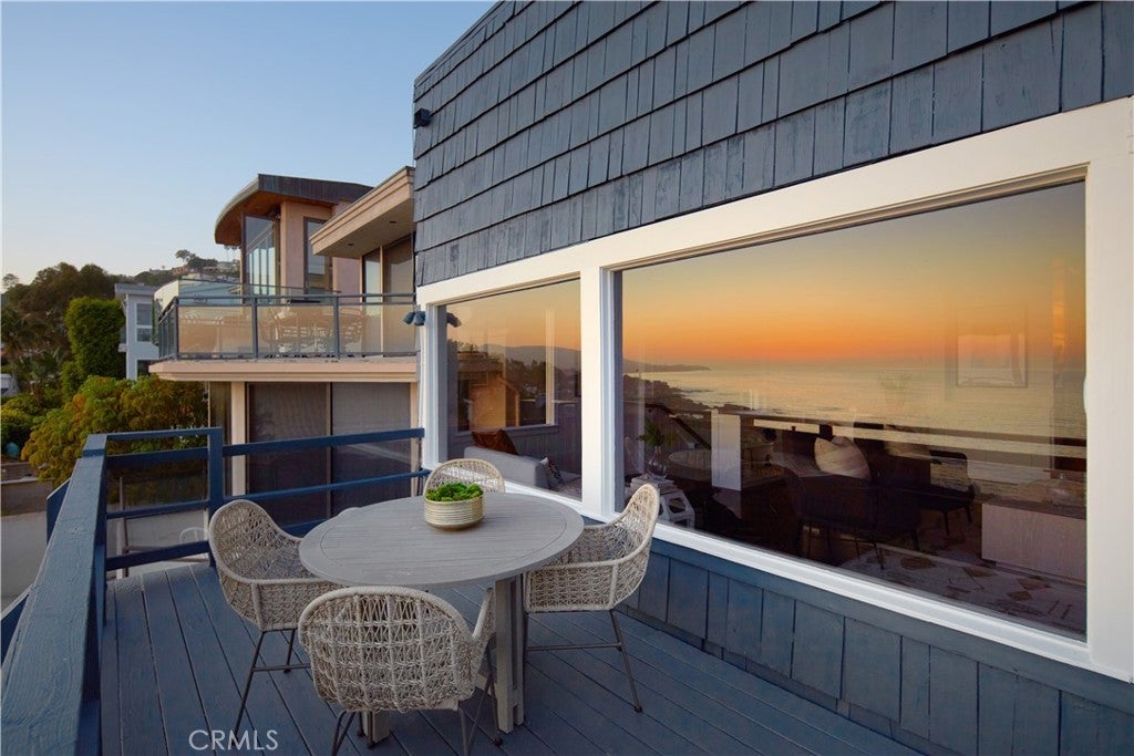 From breathtaking, 180-degree whitewater, coastline and Catalina Island views to its Cape Cod-inspired architecture, this versatile and spacious home captures the timeless charm of Laguna Beach. Just one row from the sand, the blufftop residence showcases panoramic vistas that span the coastline and beyond. Built in 1941, it offers exceptional privacy from the street, reserving the full impact of its jaw-dropping ocean setting for residents and guests. Expansive, unobstructed ocean views greet you immediately upon entry, with a light-filled main level that flows seamlessly from the dining room to a generous fireplace-warmed great room wrapped in vast windows. Breaking waves, glittering evening lights, Catalina Island, vivid sunsets, coastal hills, and Laguna’s iconic shoreline all compete for your attention, creating a constantly shifting canvas of natural beauty. These sweeping views extend through both levels of the home, as well as a large deck ideal for entertaining. A powder room is also featured on this floor, and a fully appointed kitchen displays white cabinetry, Silestone quartz countertops, stainless steel appliances, an imported Blanco sink, and direct access to an attached two-car garage. Wood flooring enriches the main level, while abundant built-in cabinetry and storage are enjoyed throughout. Custom craftsmanship is evident in the beamed ceilings, wainscoting, shiplap, white wall panels, and crown molding. The lower level hosts three bedrooms and two baths, including an en suite with bonus space perfect for a studio, office, or creative retreat. Two additional bedrooms boast stunning ocean views, with one offering a wood-burning fireplace with gas starters. A secondary entrance and access to an ocean-view patio further enhance the home’s versatility. Enjoy a prime location moments from Victoria Beach and its iconic pirate’s tower, Aliso Beach, and Laguna’s Main Beach and village. Nestled in a peaceful setting, this coastal retreat—once home to world-renowned philosopher Jacques Derrida—offers effortless access to sun, surf, and sand. Luxurious resorts, top-rated schools, and scenic trails are all just minutes away, making this a rare opportunity to own a piece of Laguna’s rich history and a front-row seat to the coast’s most spectacular views.