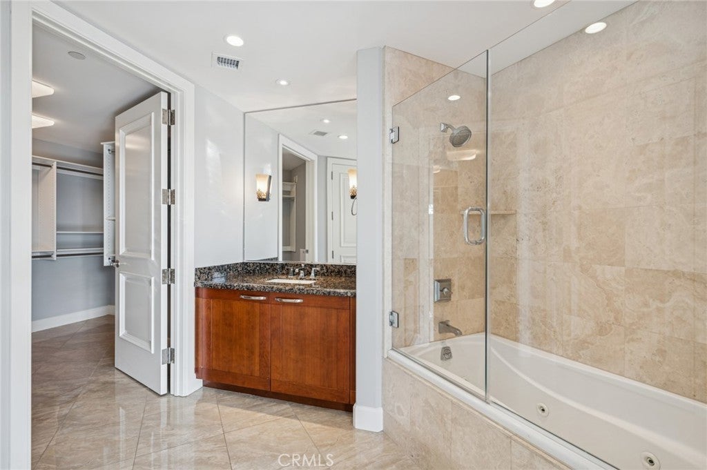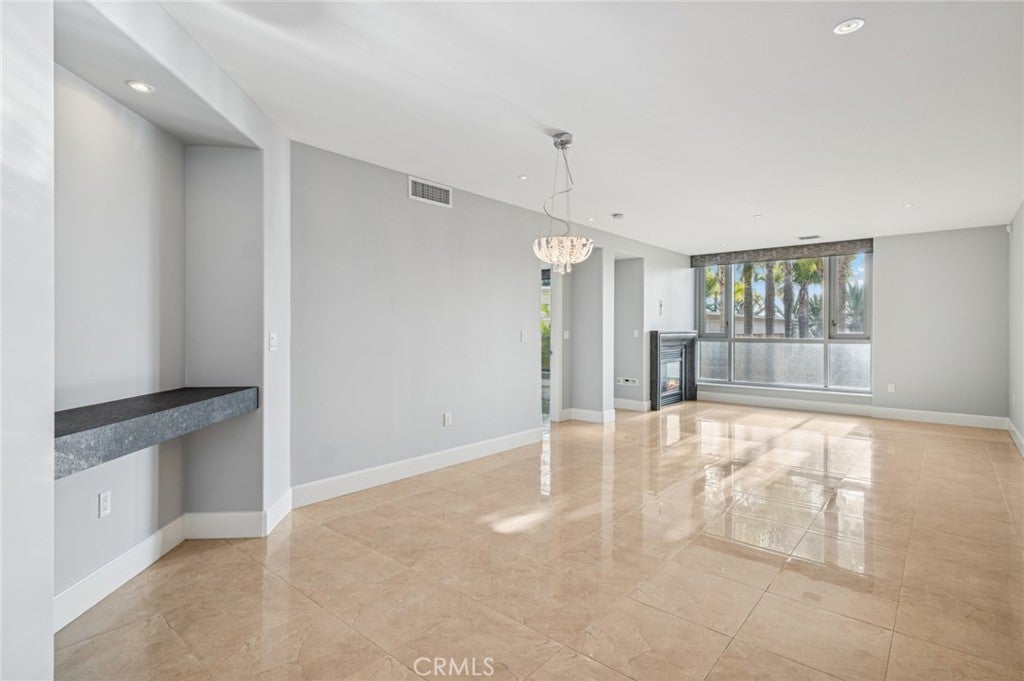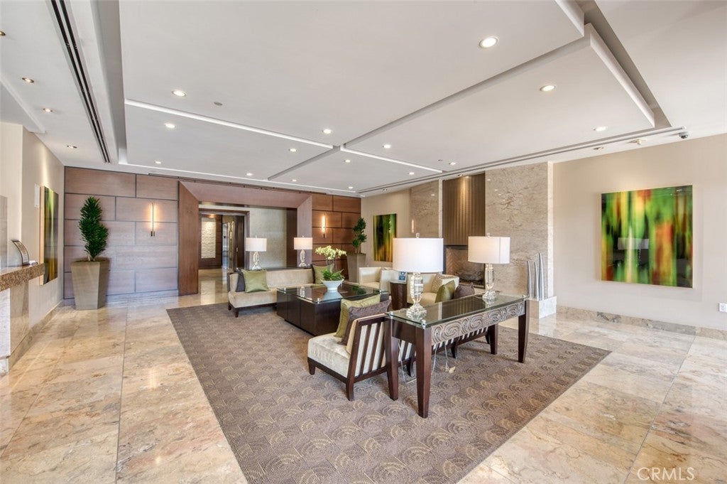 Move-in ready luxury living with serene pool and palm-tree views at The Plaza Irvine. Virtually staged, this beautifully upgraded fourth-floor residence offers the ultimate lock-and-go lifestyle in one of Orange County’s most prestigious high-rise communities, where coastal breezes and resort-style amenities define everyday living. The open and airy floor plan is filled with natural light and showcases expansive windows framing tranquil pool and courtyard views. A spacious den/office provides exceptional flexibility—ideal as a home office, media room, or guest space. High-end finishes include a combination of 24” x 24” porcelain tile and partial hardwood flooring, designer window shades, and refined architectural details throughout. The gourmet kitchen is both functional and striking, featuring Viking appliances, a new Sub-Zero refrigerator, Snaidero Italian cabinetry with under-cabinet lighting, granite countertops, and an oversized center island—perfect for entertaining or everyday living. The spa-inspired bathroom retreat offers a soaking tub, glass-enclosed shower, and elegant stone finishes, while the custom walk-in closet provides exceptional storage. Additional highlights include two assigned tandem parking spaces in a secured garage and a climate-controlled private storage unit. Residents of The Plaza enjoy five-star, resort-style amenities, including a cabana-lined pool and spa, a 5,000-square-foot fitness center with Life Fitness equipment, steam rooms, massage room, club rooms, billiard lounges, conference centers, business center, outdoor fireplace and dining areas, and 24-hour lobby attendants and concierge services.