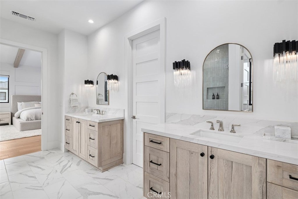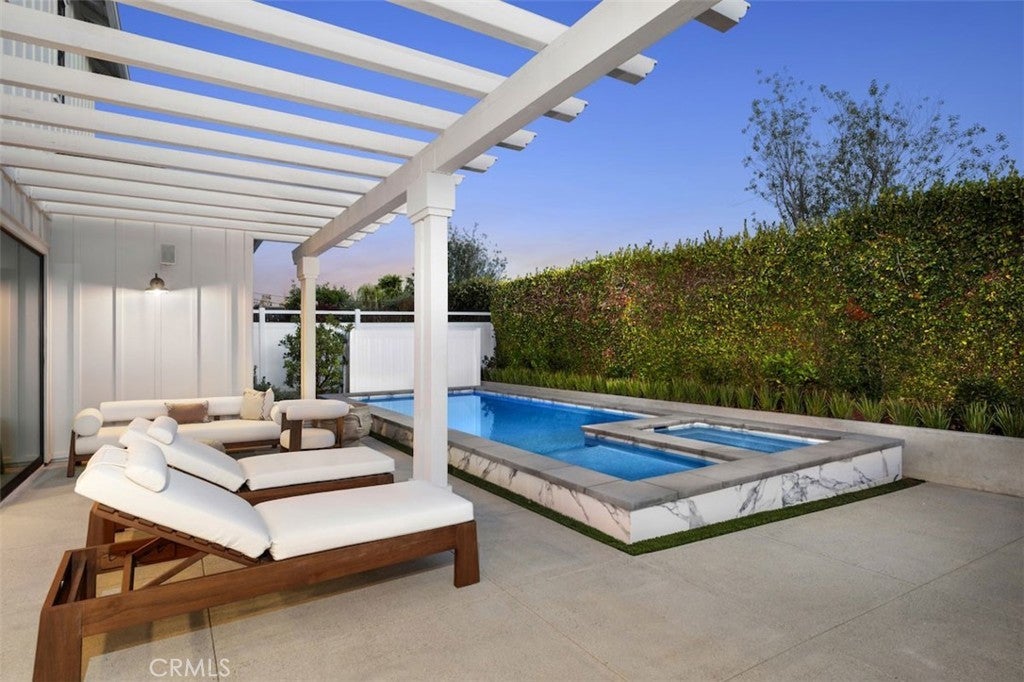 Completed in 2024, this residence in the Highlands of Dover Shores captures the ease of modern Newport Beach living with a clean architectural sensibility and a focus on light, scale, and livability. High ceilings and an open-plan design establish a sense of volume from the moment you enter, while carefully selected materials keep the spaces warm and grounded. Throughout the home, natural materials, wide-plank flooring, and soft modern finishes create a calm, cohesive aesthetic that feels both current and timeless. The main level is designed for both flow and function, with expansive living and dining areas sit adjacent to a striking kitchen featuring custom cabinetry, an oversized island, and integrated appliances. Large scale windows and sliding wall-to-wall doors dissolve the boundary between indoors and out, opening to a newly completed backyard designed for everyday enjoyment and entertaining alike. A brand new pool and spa, built-in barbecue, and covered lounge areas surrounded by mature hedges create a relaxed, resort-like atmosphere with privacy to match. A bedroom suite on the main level adds flexibility ideal for guests, extended family, or a dedicated work-from-home space. Upstairs, the primary suite serves as a quiet retreat- complete with a spa-inspired bath with stand-alone tub and considerable dual walk-in closets- generous proportions, and thoughtful design moments that serve to elevate every day life. Three additional en-suite bedrooms ensure comfort and privacy, while a bonus loft provides a versatile space ideal for a media room, homework zone, or casual lounge. Set in one of Newport Beach’s most desirable neighborhoods, Dover Shores is prized for its ocean-close lifestyle, and proximity to top-rated schools, scenic Back Bay trails, and world-class dining and shopping.